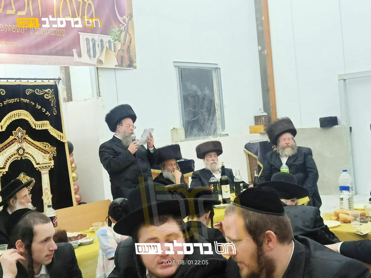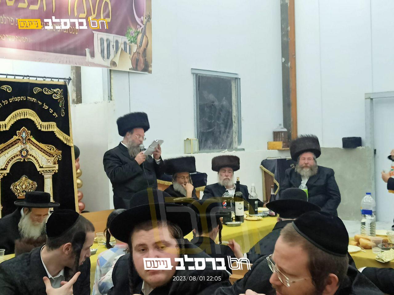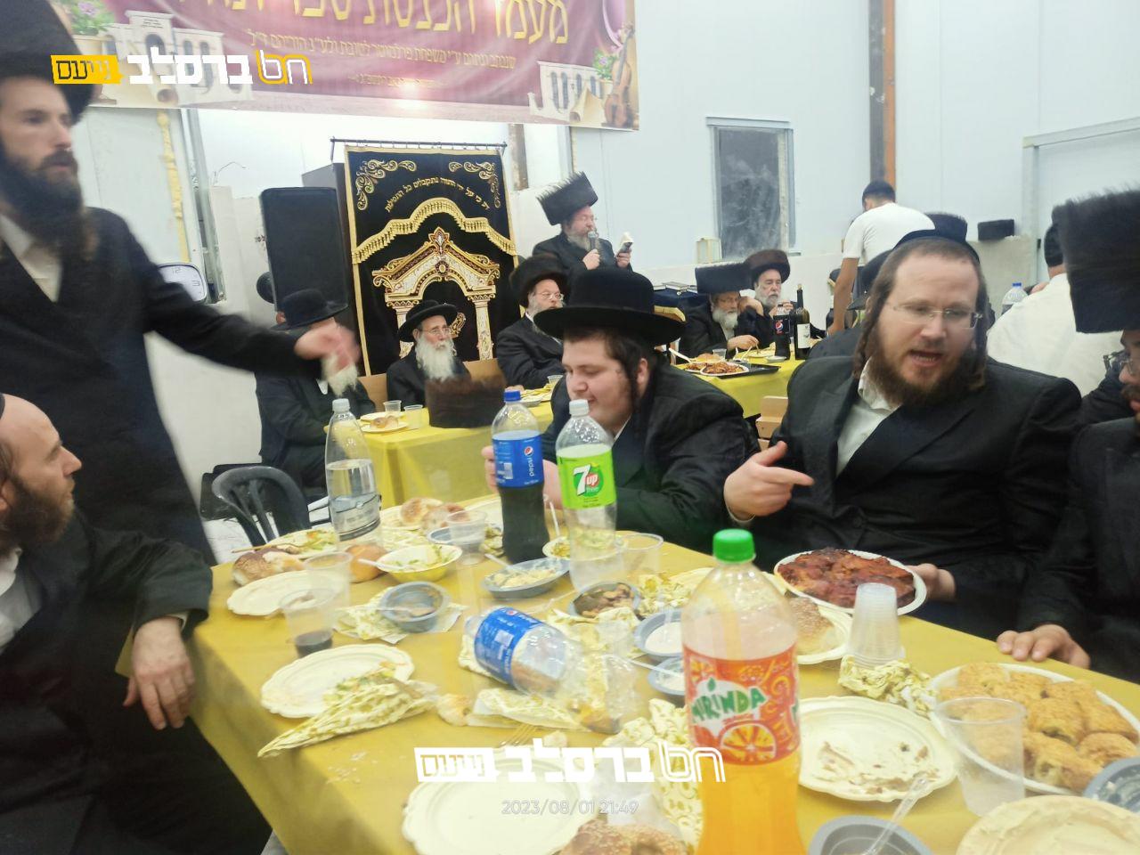 אחר הכנסתו של ספר התורה החדש לארון הקודש, נערכה סעודה המצוה המפוארת לבני המשפחה, בהיכל בית המדרש, כאשר במהלך הסעודה נשמעו דברים נרגשים בשם המתפללים מפי הרה"ח ר' נחמן (ב"ר עמרם) הורביץ שליט"א, וכן מאת הרה"ח ר' נתן מיימון שליט"א הר"ר נתן מנחם ברמץ חתן הרה"ח המפואר ר' יעקב פרלמוטר שליט"א, וכמו"כ השתתף בשמחה המשפיע הרה"ח ר' יצחק אנשין שליט"א.