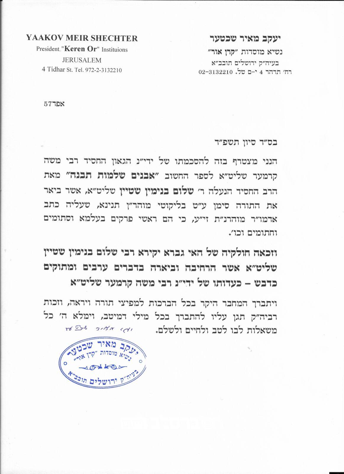 לראשונה פיענוח של תורה ע"ט תניינא מפרי עטו של האברך מהר"ר שלום שטיין שליט"א, מירושלים, ספר המעוטר בהסכמות נפלאות של הרבנים גדולי זקני אנ"ש הגה"צ רבי יעקב מאיר שכטער שליט"א והגה"צ רבי משה קרמר שליט"א המתבטאים בלשונות נדירות כפי שניתן לראות בהסכמותיהם.