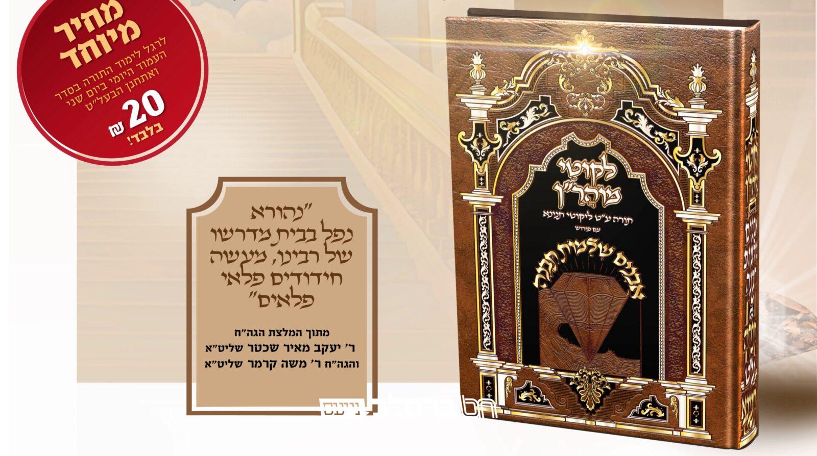 הפצה • הופיע הספר 'אבנים שלמות תבנה' על תורה ע"ט תנינא