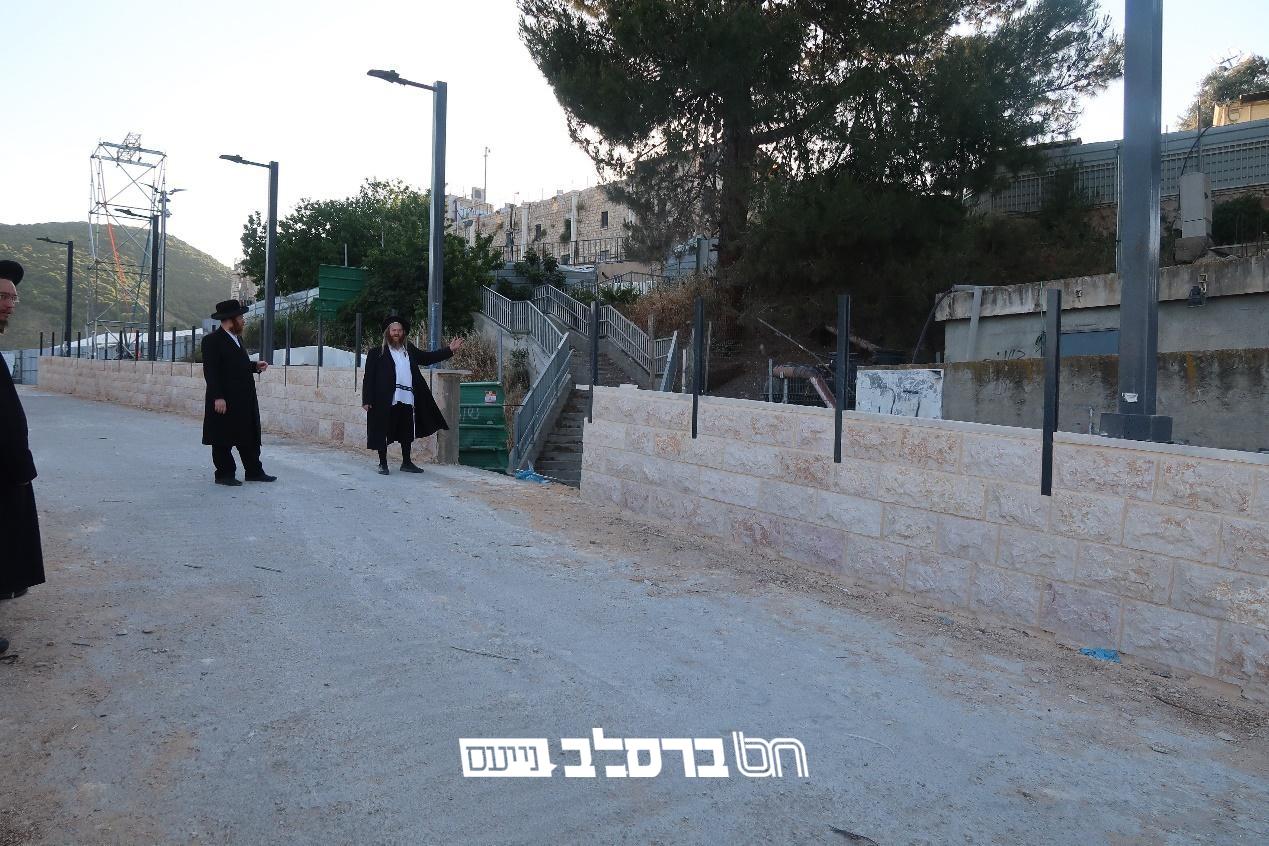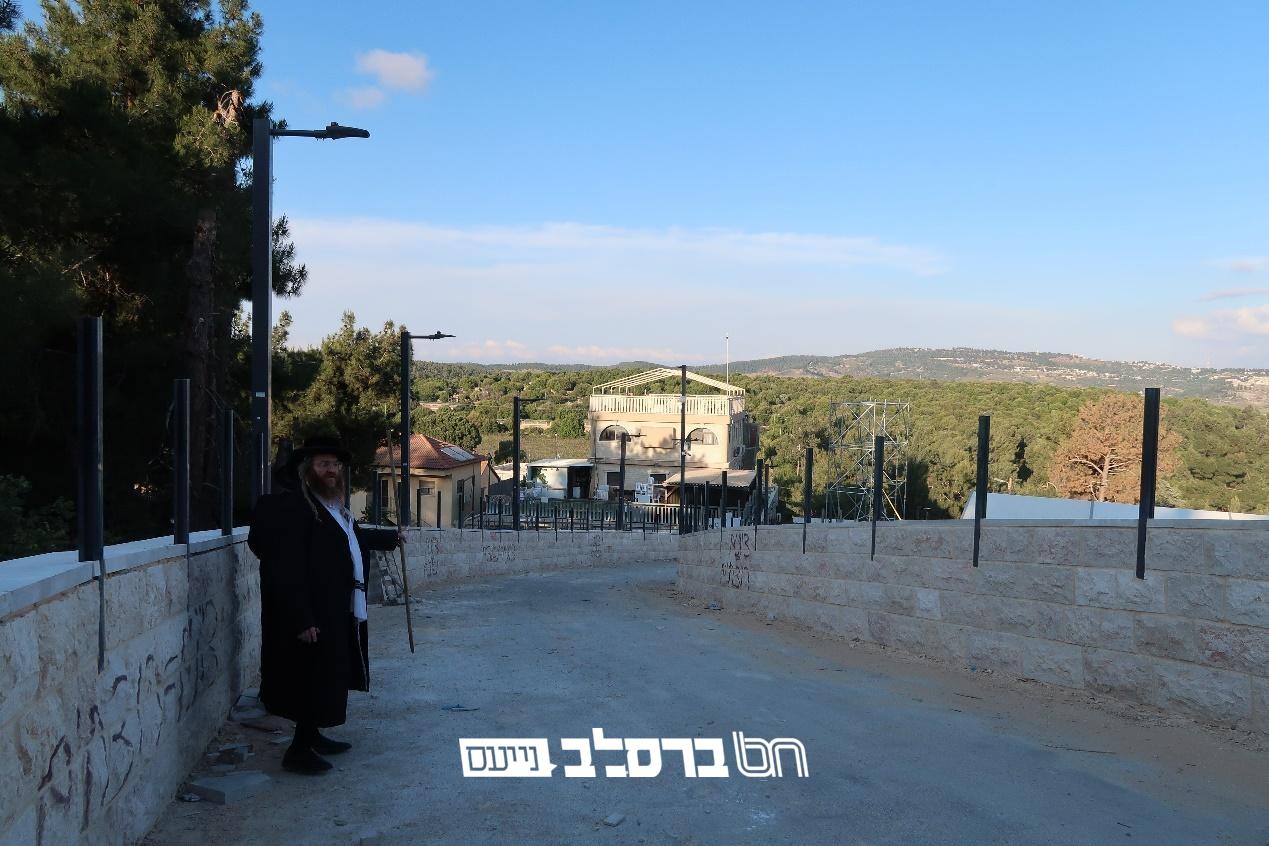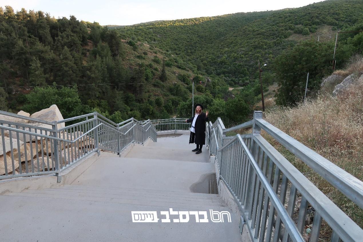 אנו פוסחים על שביל רבי דב וממשיכים אל המדרגות והשביל שמובילות לרחבת 'הכנסת אורחים קרליבך'.