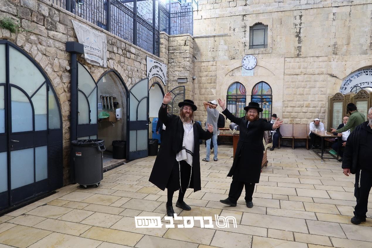 אחרי שהיינו בתוך הציון והרגשנו את ה'יום כיפור' בפנים, אנו רוצים להגיע לחצר הרשב"י ולהרגיש את ה'שמחת תורה' בחוץ, נכספה וגם כלתה נפש לחצרות השם, הלב הומה מהתרגשות, החצר והגזזוטראות הנוסטלגיות שראו כ"כ הרבה בשנים האחרונות בימי קורונה ובימי מלחמה, החצר שהינו הסמל להילולא דרשב"י ולשמחה הגדולה של התנא האלוקי מאות בשנים, הרגליים קופצות מאליהם והידים מורמות בתשוקה לשמוח בשמחת הרשב"י, האחים ר' שמעון ור' צבי אינם יכולים לעצור מלבצע קדאצ'קע ירושלמית בחצר.