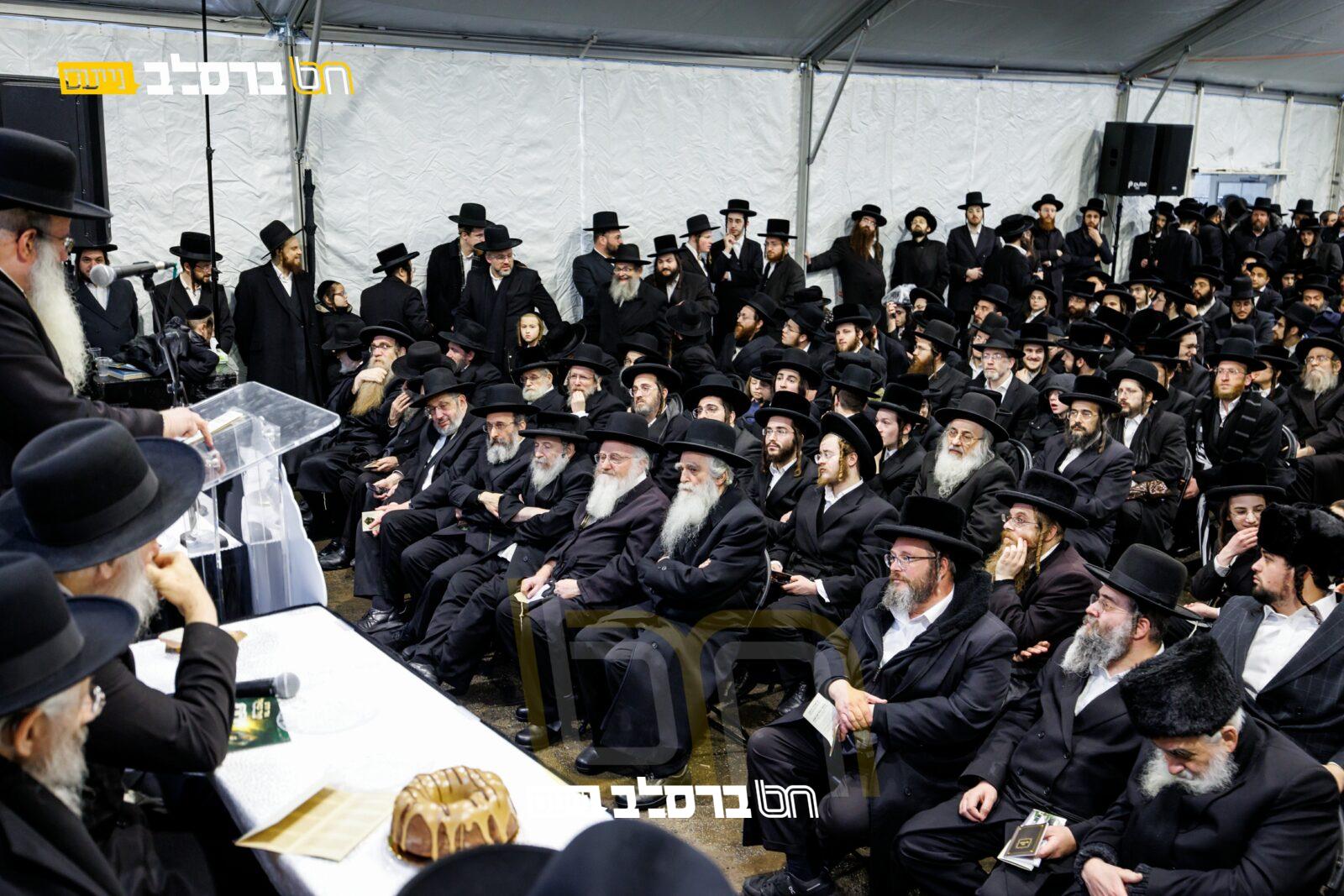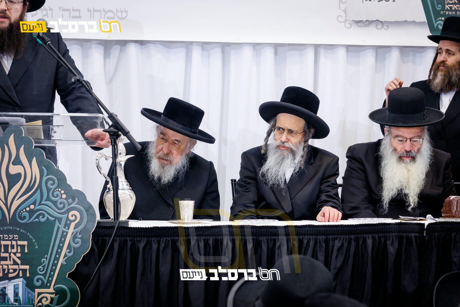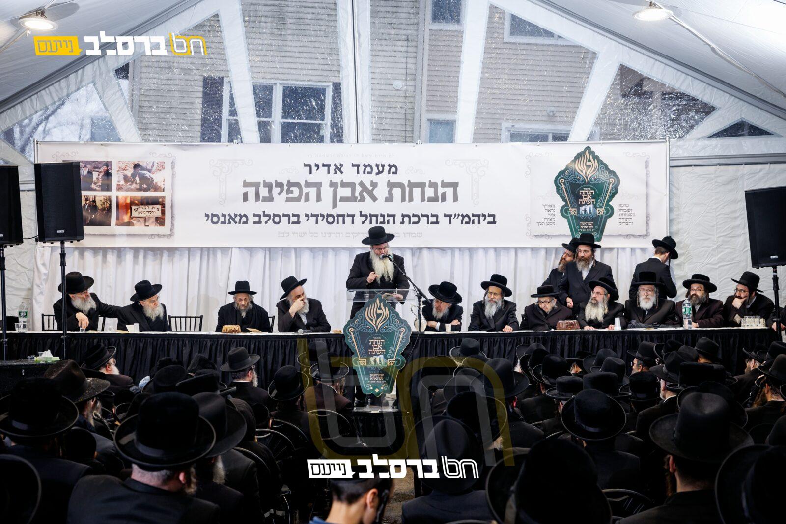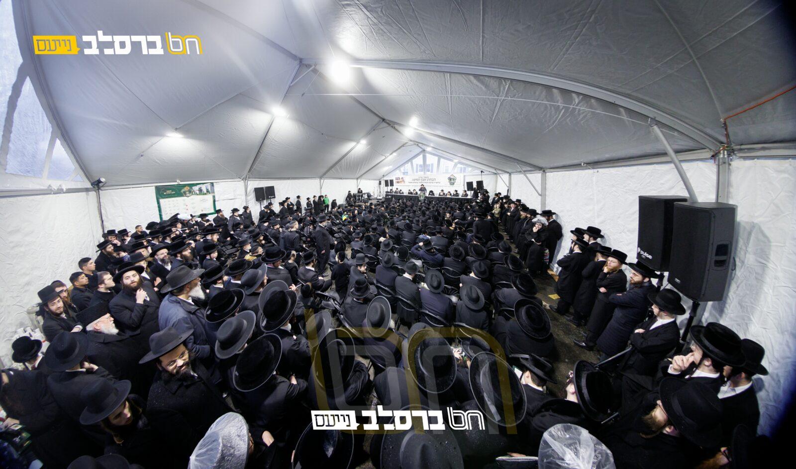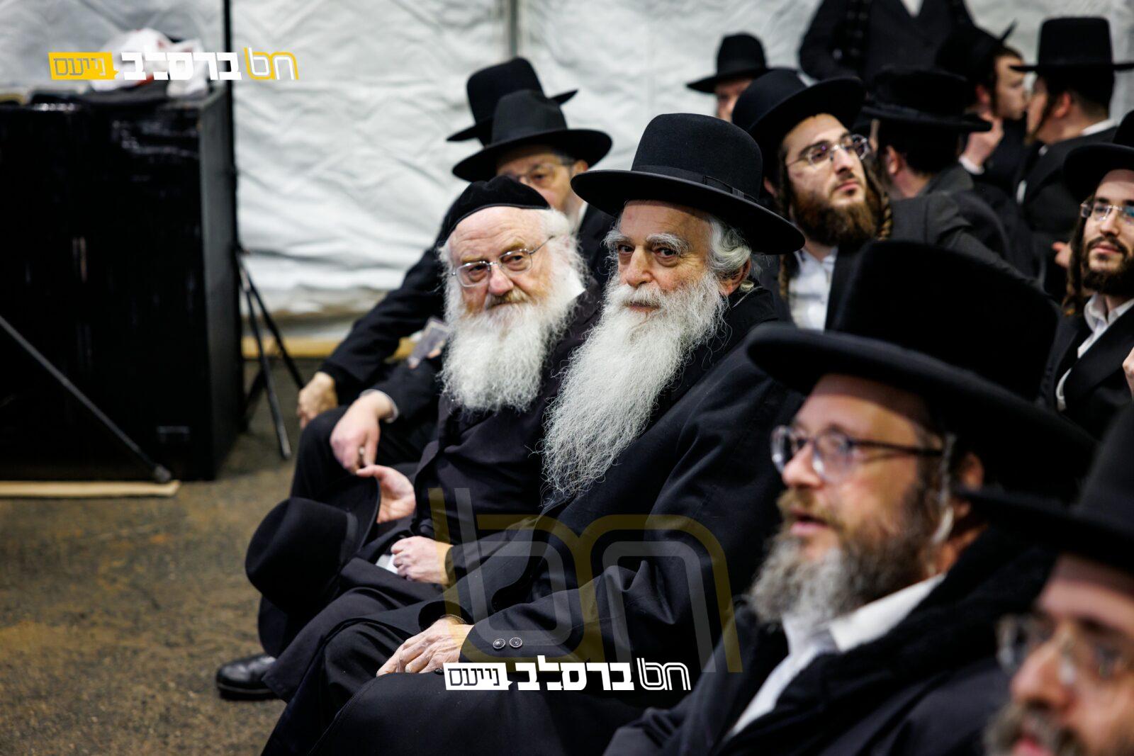 המעמד נערך באהל ענק שנבנה בסמוך למקום בניית הבניין והתקיים בהשתתפות מאות מיקירי אנשי שלומינו זקנים עם נערים בחורים לצד חסידים ואנשי מעשה עטורי זקנה ושיבה הע"י, כולם באו ונקבצו לך להשתתף במעמד ההיסטורי והנשגב. כאשר את המעמד ההיסטורי מנחה ברוב כשרון נופת צופים המגיד העולמי הרה"ח ר' מאיר מרדכי בערקאוויטש שליט"א מיקירי אנ"ש בארה"ב. ובין הייתר נשמעו דברים מפי הגה"צ רבי משה קרעמער שליט"א, כן נשמעו דברים מפי הגה"צ רבי יעקב מאיר שכטער שליט"א בלייב־הוקאפ (שידור חיי). ומעוד רבנים חשובים.