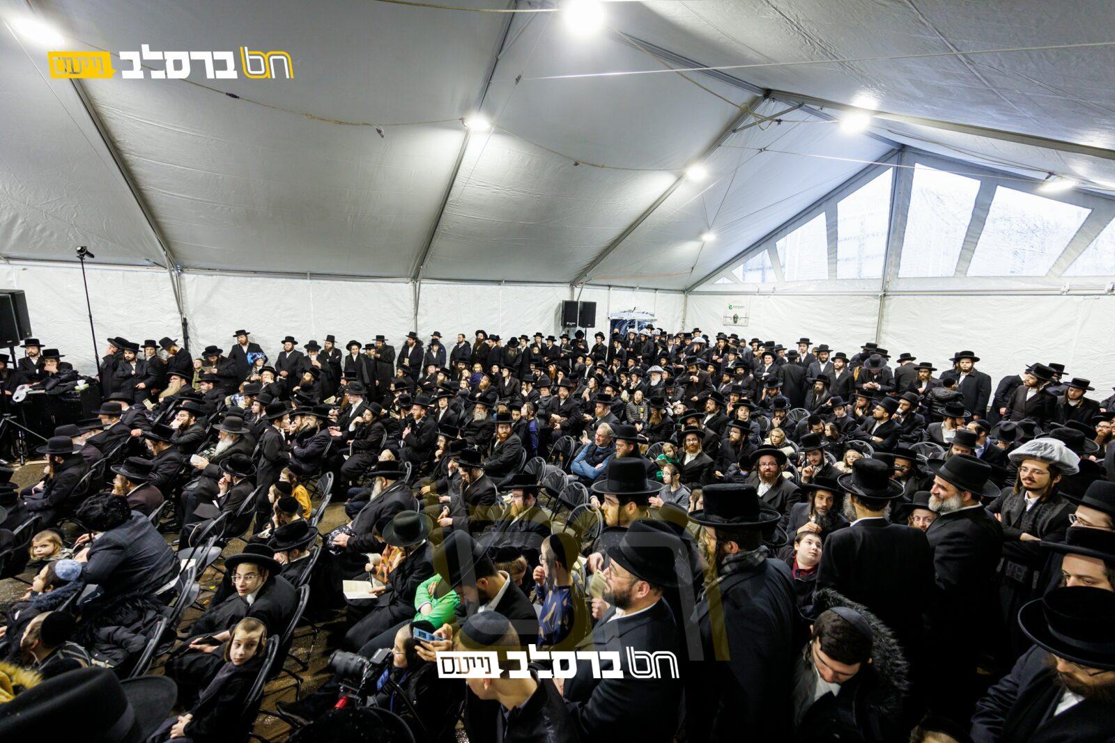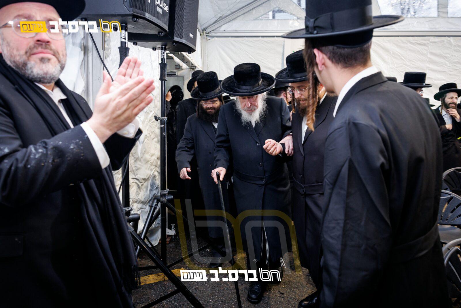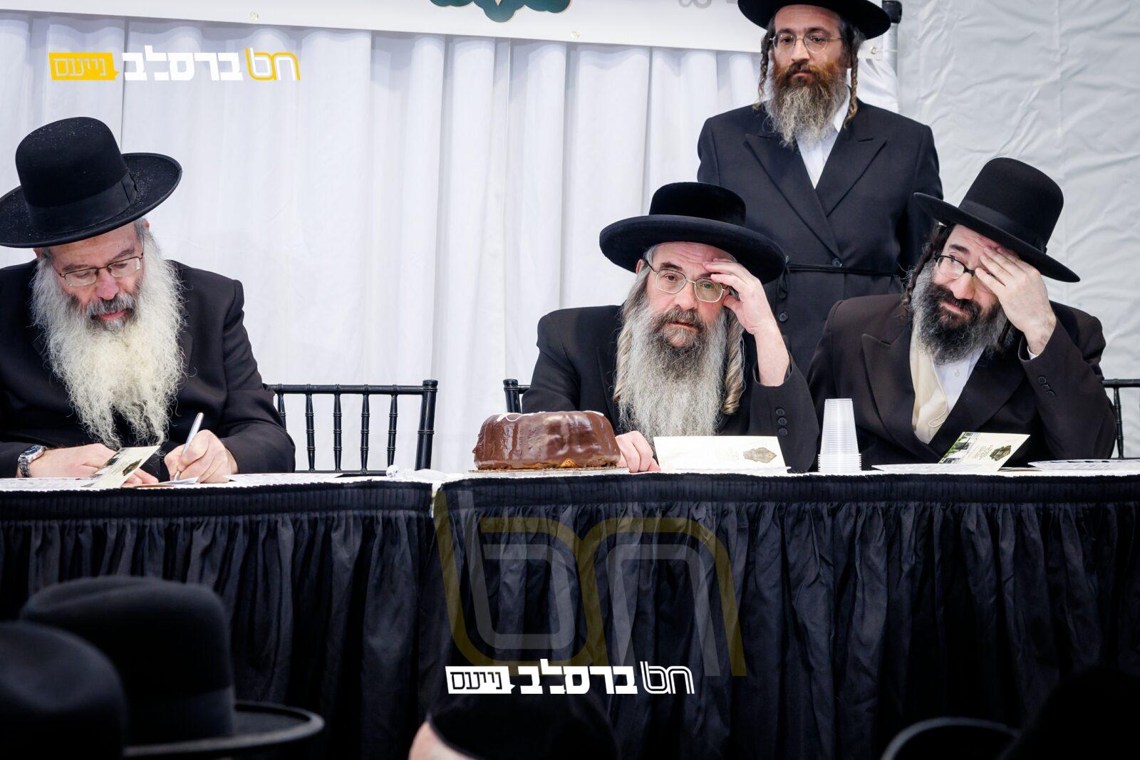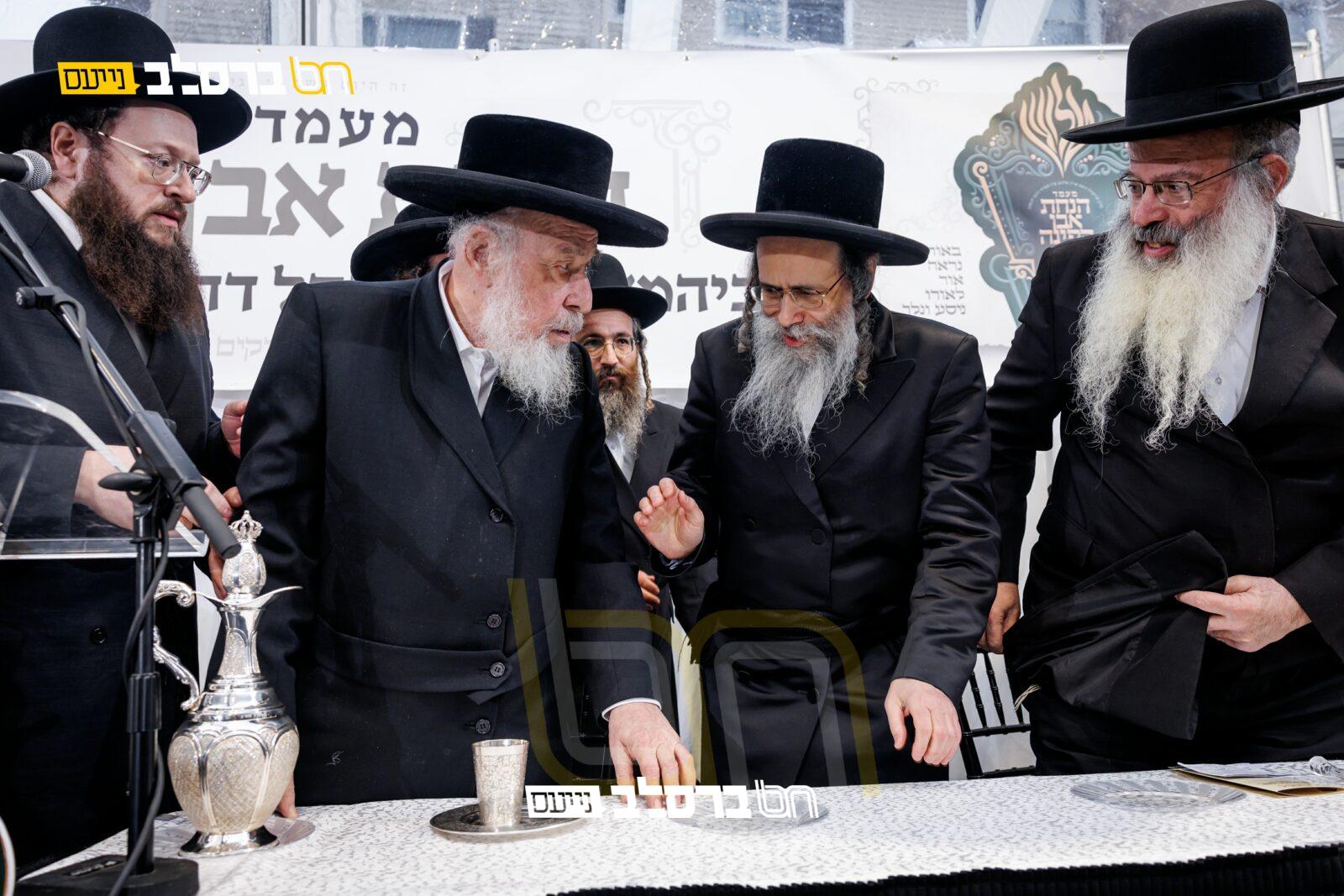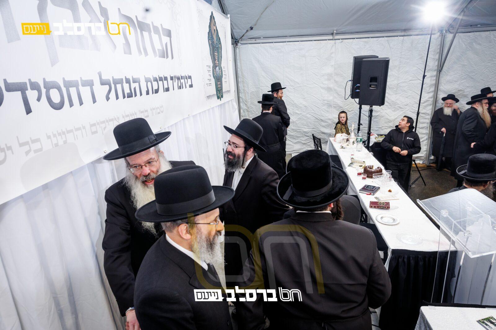 המעמד נערך באהל ענק שנבנה בסמוך למקום בניית הבניין והתקיים בהשתתפות מאות מיקירי אנשי שלומינו זקנים עם נערים בחורים לצד חסידים ואנשי מעשה עטורי זקנה ושיבה הע"י, כולם באו ונקבצו לך להשתתף במעמד ההיסטורי והנשגב. כאשר את המעמד ההיסטורי מנחה ברוב כשרון נופת צופים המגיד העולמי הרה"ח ר' מאיר מרדכי בערקאוויטש שליט"א מיקירי אנ"ש בארה"ב. ובין הייתר נשמעו דברים מפי הגה"צ רבי משה קרעמער שליט"א, כן נשמעו דברים מפי הגה"צ רבי יעקב מאיר שכטער שליט"א בלייב־הוקאפ (שידור חיי). ומעוד רבנים חשובים.