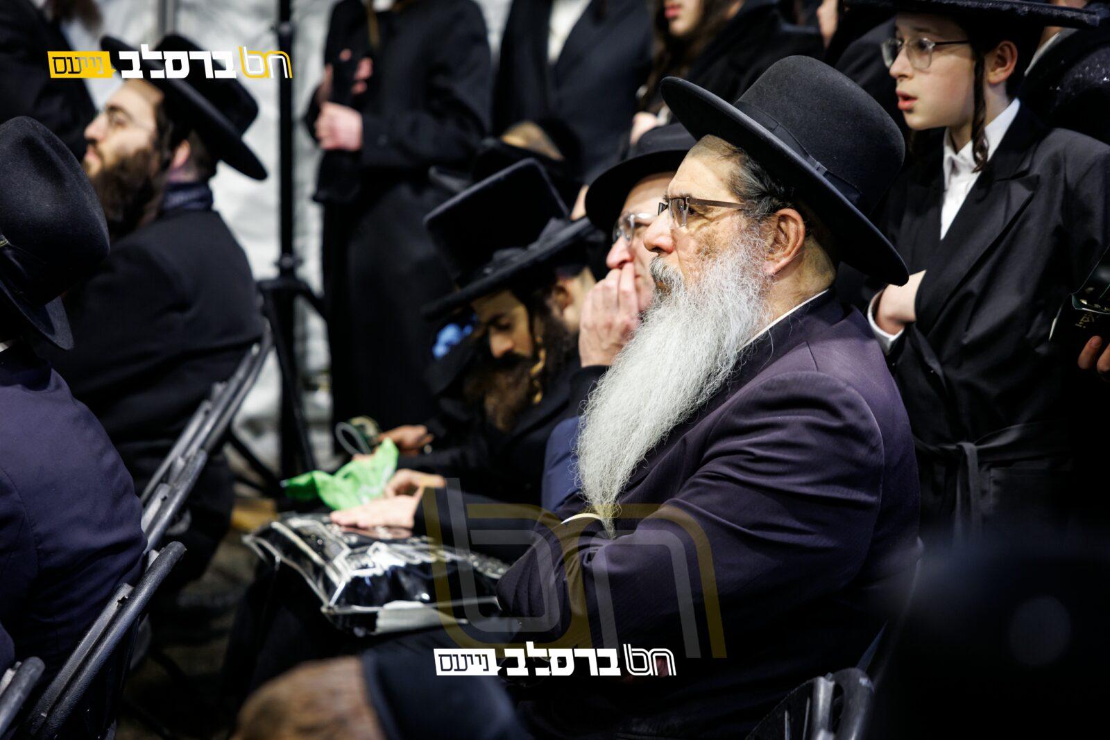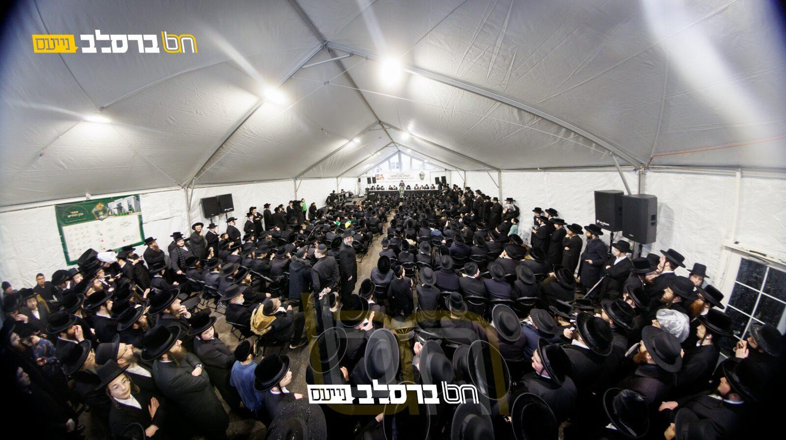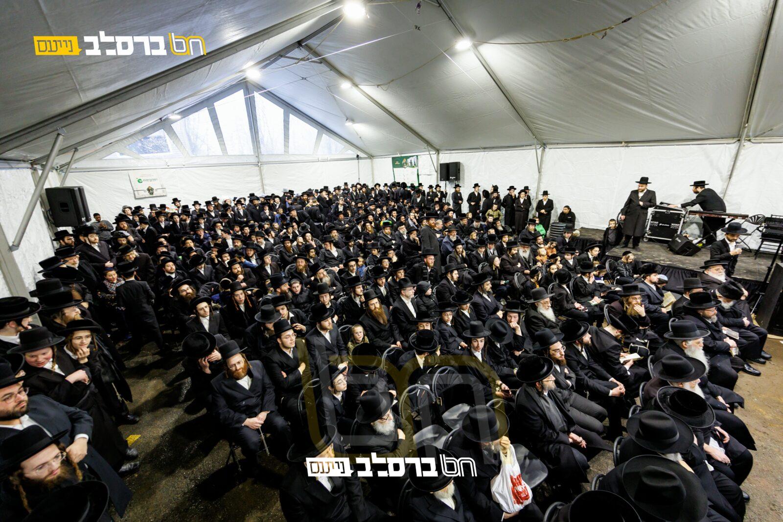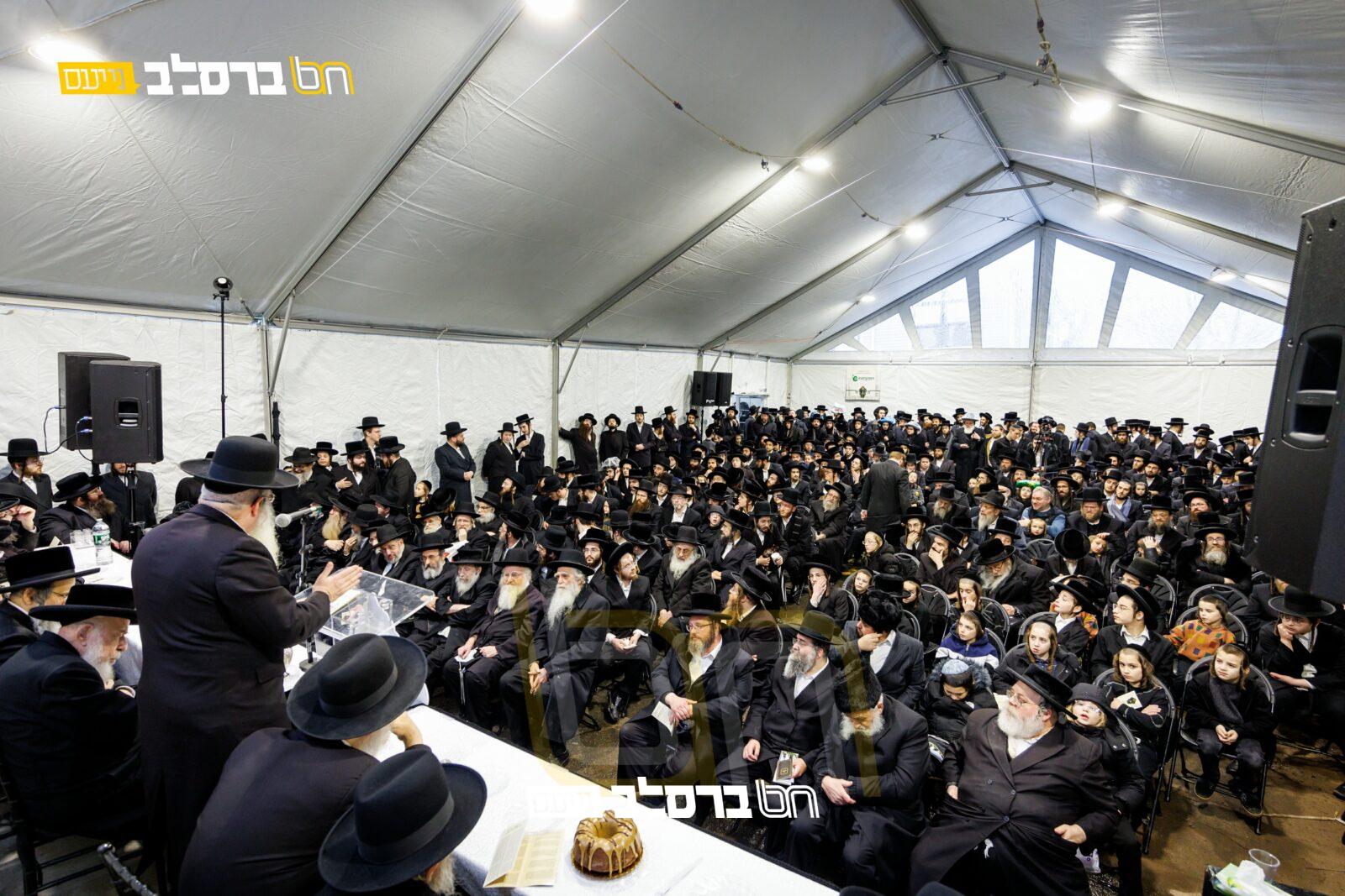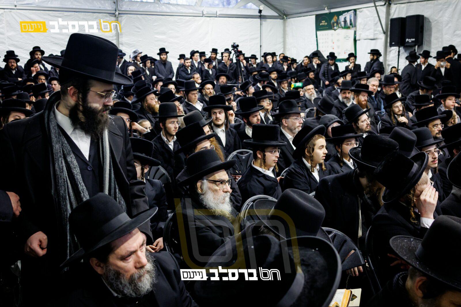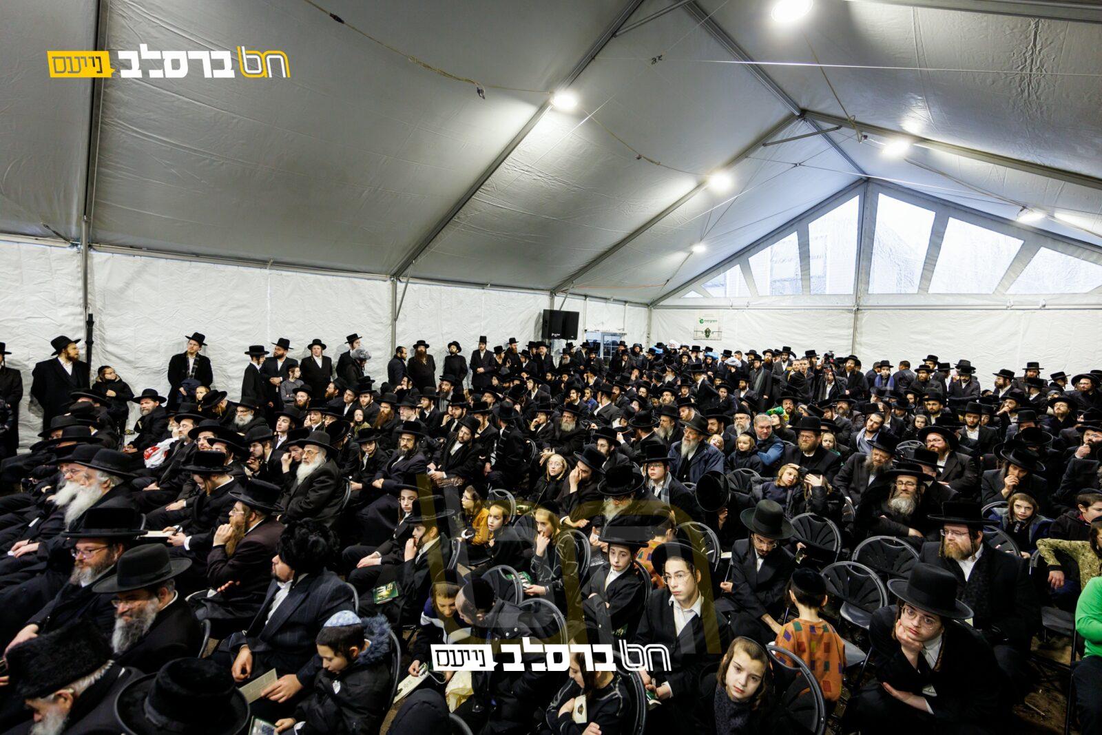 המעמד נערך באהל ענק שנבנה בסמוך למקום בניית הבניין והתקיים בהשתתפות מאות מיקירי אנשי שלומינו זקנים עם נערים בחורים לצד חסידים ואנשי מעשה עטורי זקנה ושיבה הע"י, כולם באו ונקבצו לך להשתתף במעמד ההיסטורי והנשגב. כאשר את המעמד ההיסטורי מנחה ברוב כשרון נופת צופים המגיד העולמי הרה"ח ר' מאיר מרדכי בערקאוויטש שליט"א מיקירי אנ"ש בארה"ב. ובין הייתר נשמעו דברים מפי הגה"צ רבי משה קרעמער שליט"א, כן נשמעו דברים מפי הגה"צ רבי יעקב מאיר שכטער שליט"א בלייב־הוקאפ (שידור חיי). ומעוד רבנים חשובים.