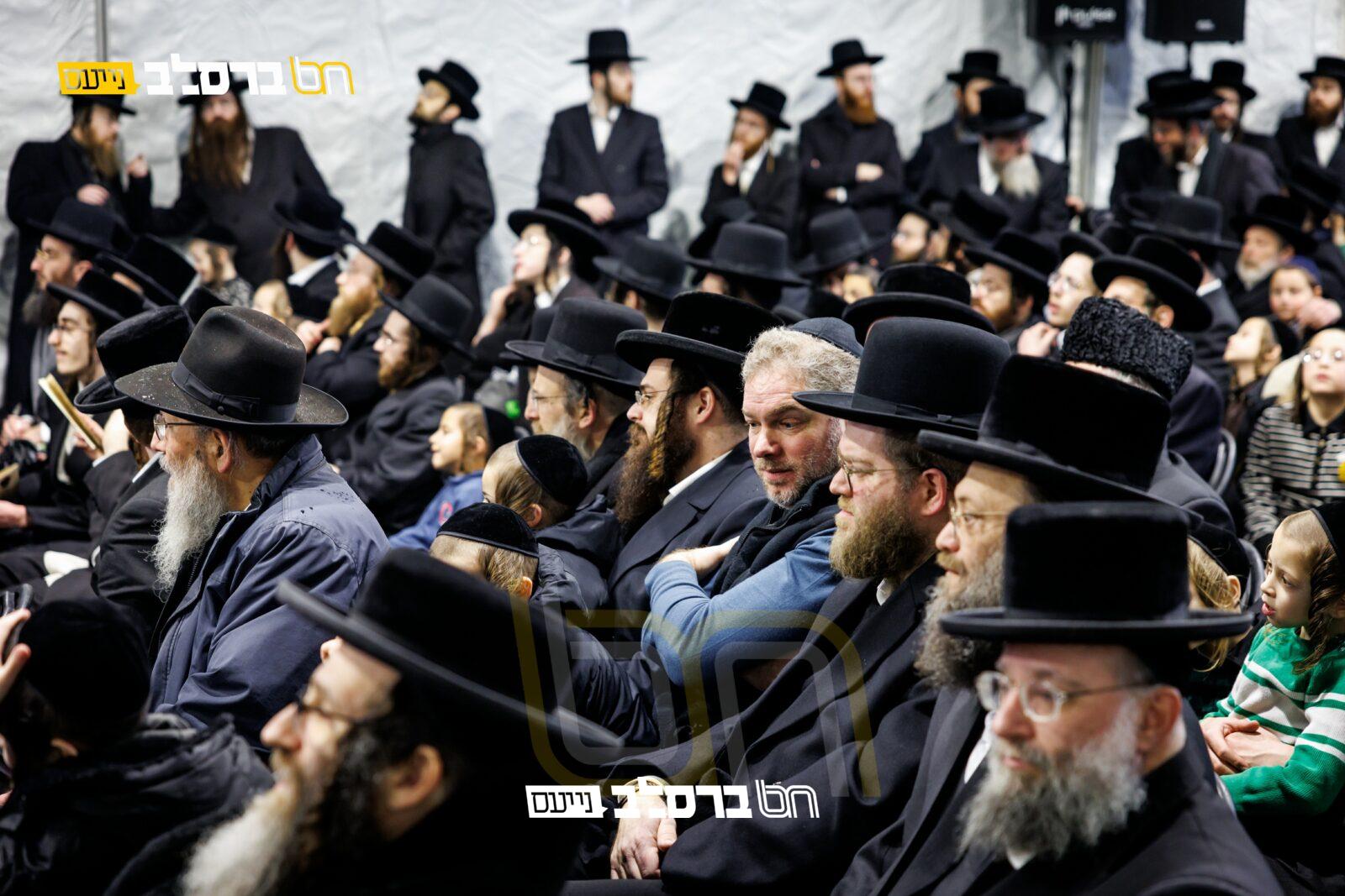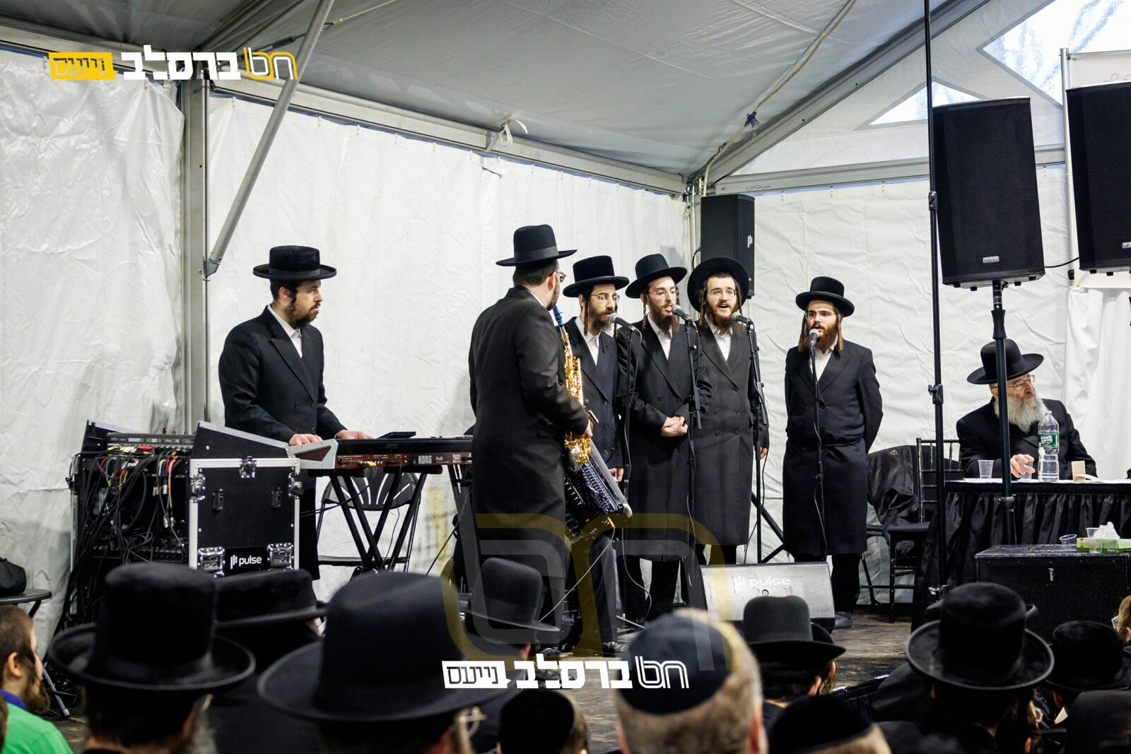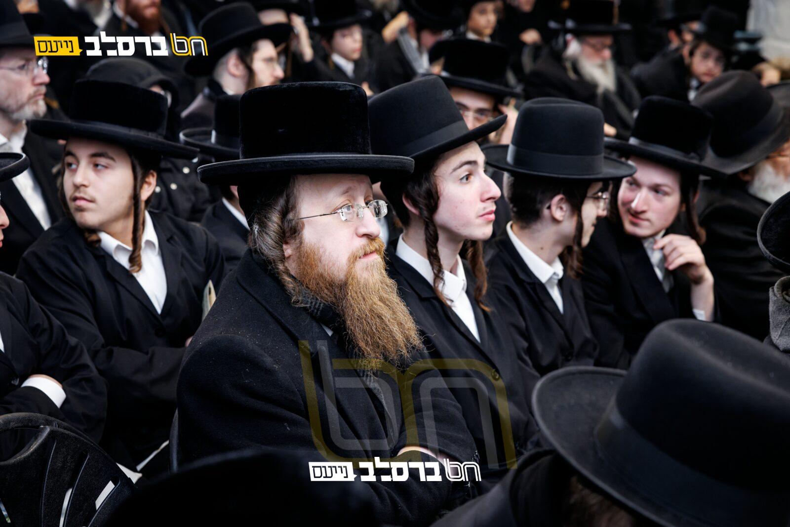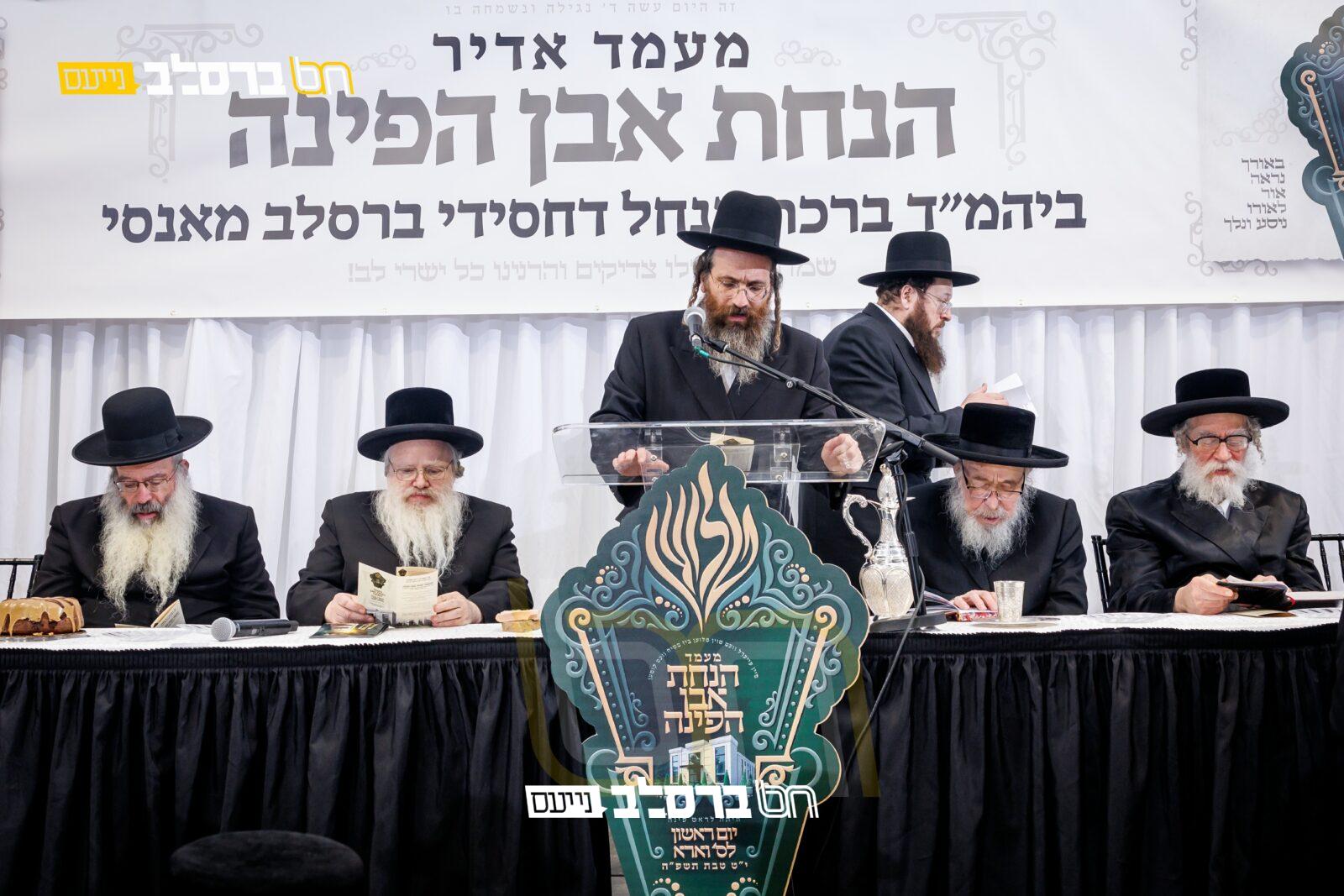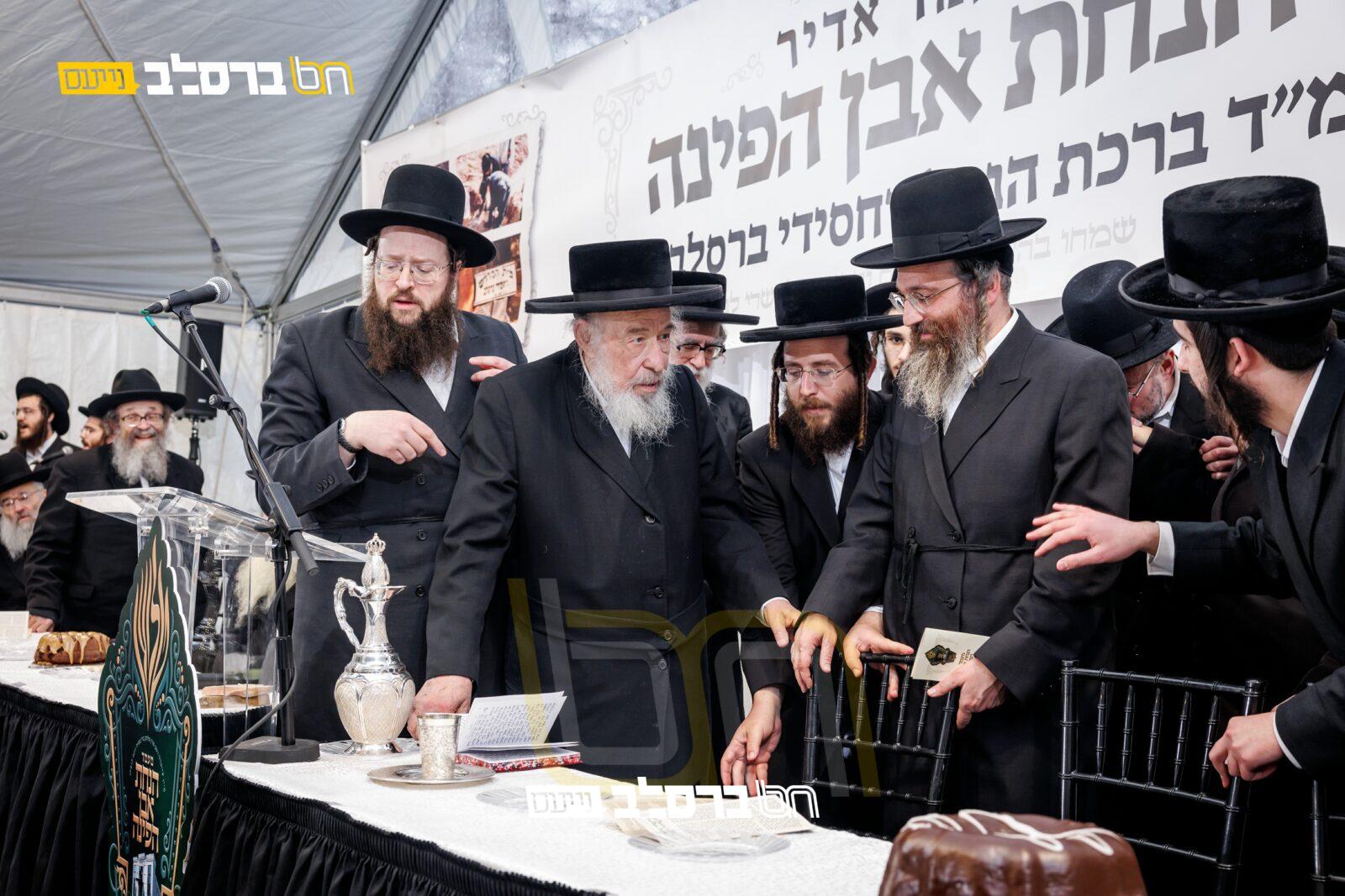 המעמד נערך באהל ענק שנבנה בסמוך למקום בניית הבניין והתקיים בהשתתפות מאות מיקירי אנשי שלומינו זקנים עם נערים בחורים לצד חסידים ואנשי מעשה עטורי זקנה ושיבה הע"י, כולם באו ונקבצו לך להשתתף במעמד ההיסטורי והנשגב. כאשר את המעמד ההיסטורי מנחה ברוב כשרון נופת צופים המגיד העולמי הרה"ח ר' מאיר מרדכי בערקאוויטש שליט"א מיקירי אנ"ש בארה"ב. ובין הייתר נשמעו דברים מפי הגה"צ רבי משה קרעמער שליט"א, כן נשמעו דברים מפי הגה"צ רבי יעקב מאיר שכטער שליט"א בלייב־הוקאפ (שידור חיי). ומעוד רבנים חשובים.