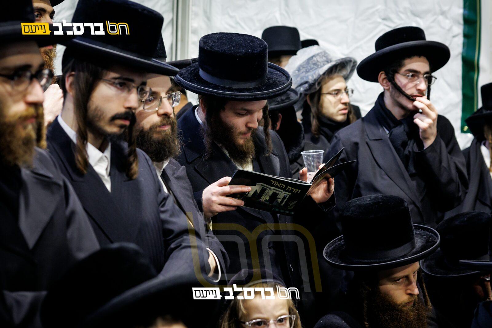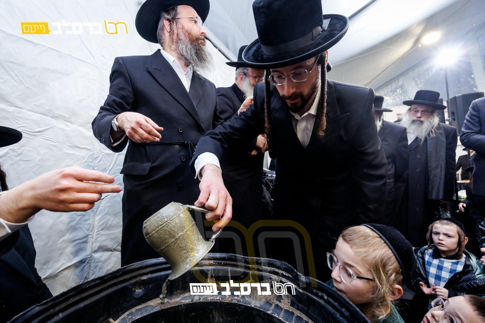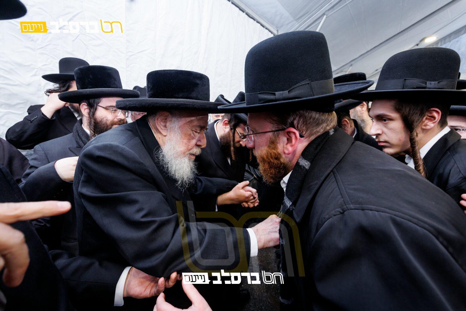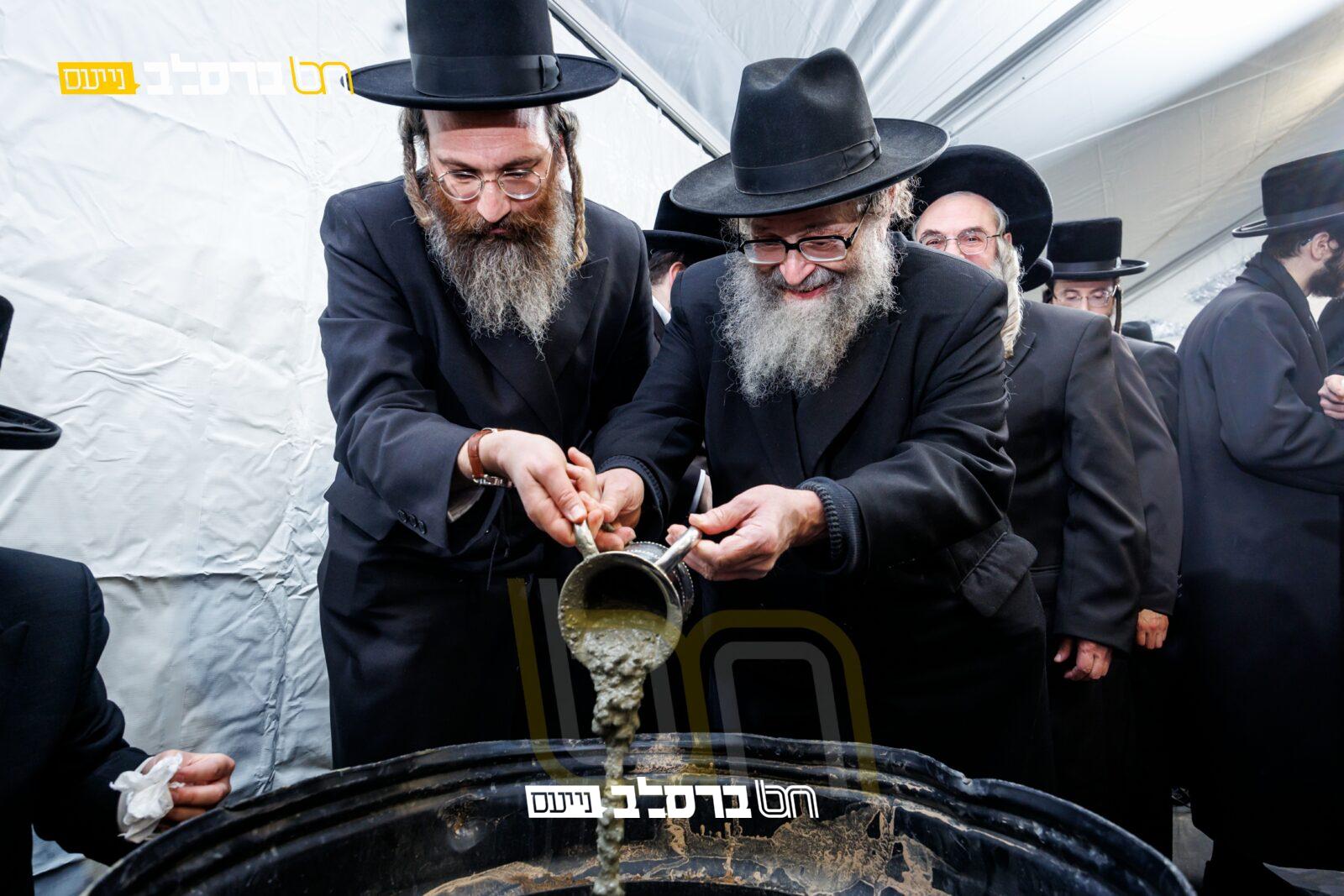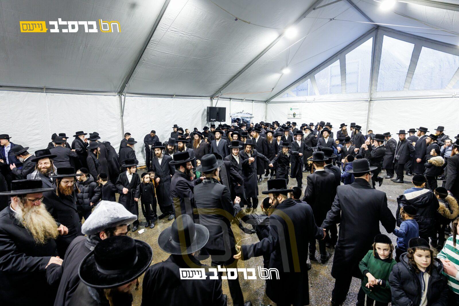 המעמד נערך באהל ענק שנבנה בסמוך למקום בניית הבניין והתקיים בהשתתפות מאות מיקירי אנשי שלומינו זקנים עם נערים בחורים לצד חסידים ואנשי מעשה עטורי זקנה ושיבה הע"י, כולם באו ונקבצו לך להשתתף במעמד ההיסטורי והנשגב. כאשר את המעמד ההיסטורי מנחה ברוב כשרון נופת צופים המגיד העולמי הרה"ח ר' מאיר מרדכי בערקאוויטש שליט"א מיקירי אנ"ש בארה"ב. ובין הייתר נשמעו דברים מפי הגה"צ רבי משה קרעמער שליט"א, כן נשמעו דברים מפי הגה"צ רבי יעקב מאיר שכטער שליט"א בלייב־הוקאפ (שידור חיי). ומעוד רבנים חשובים.