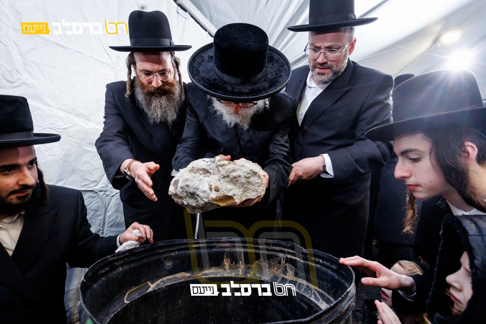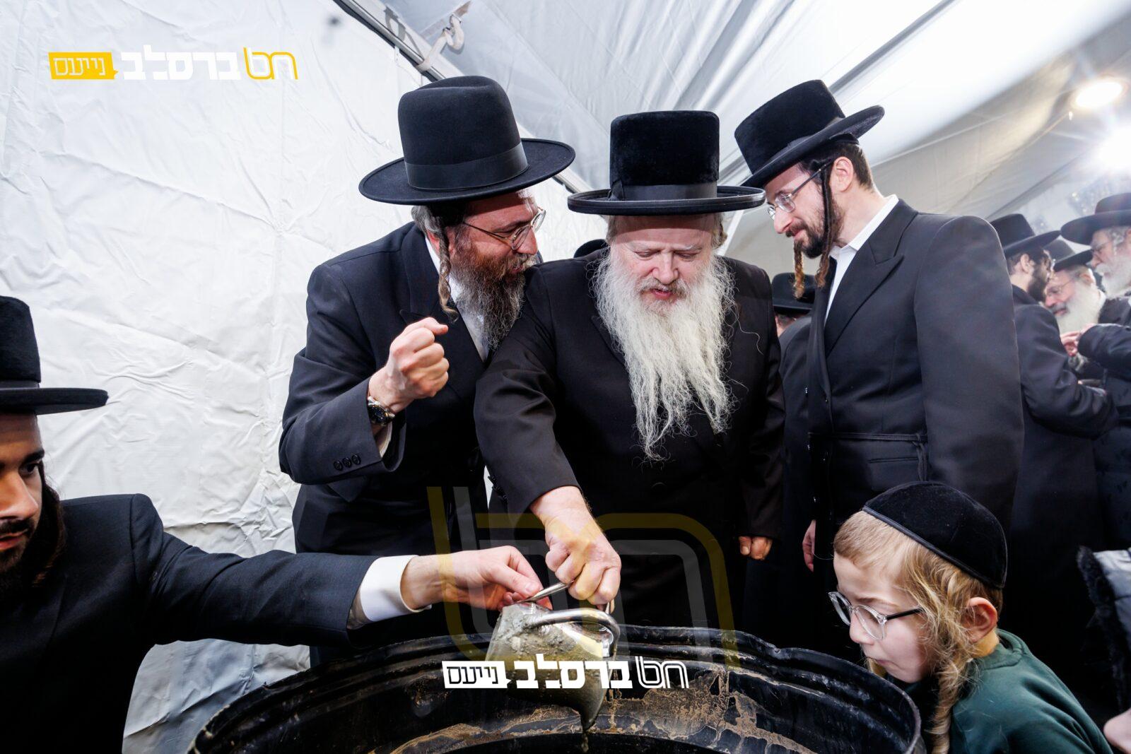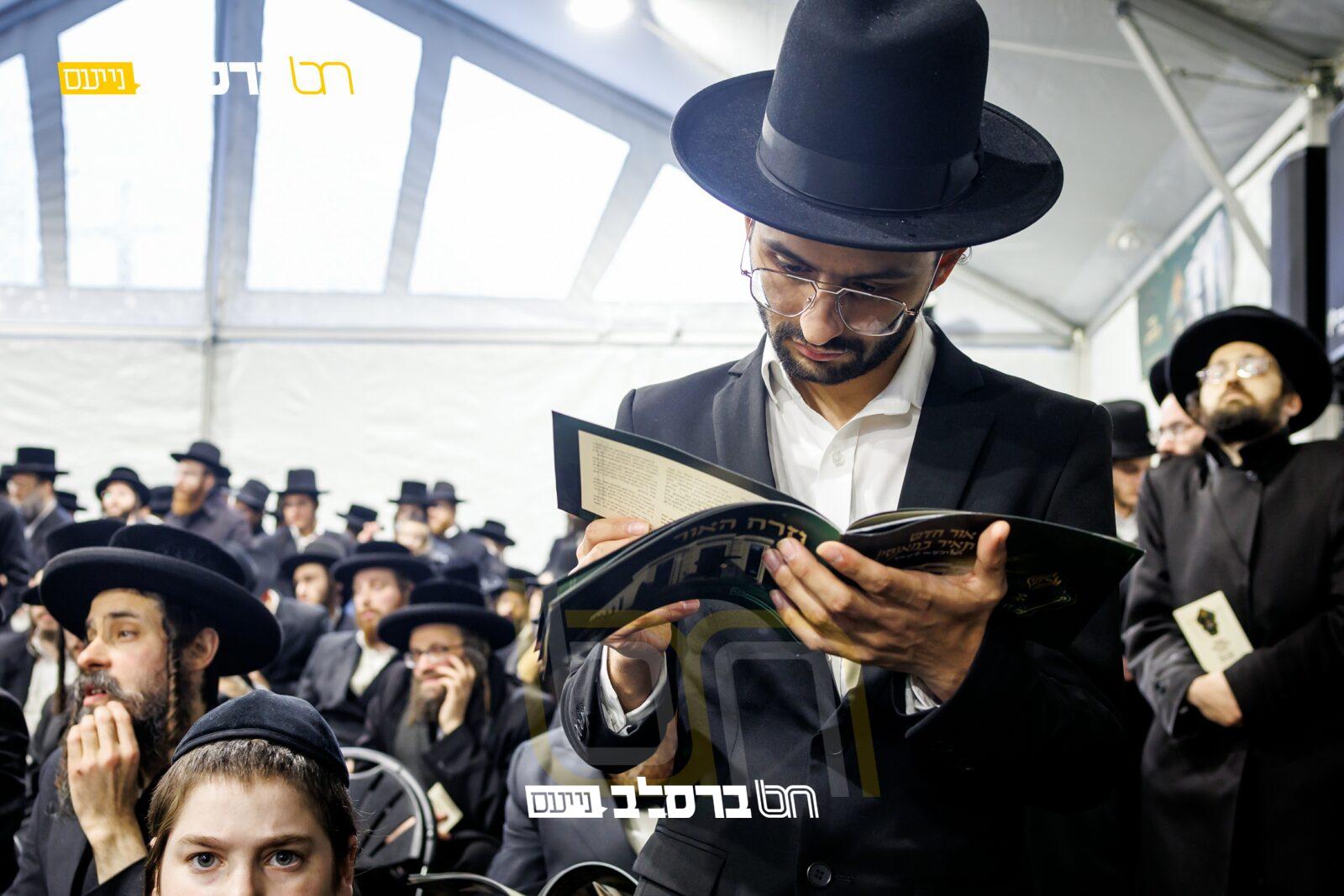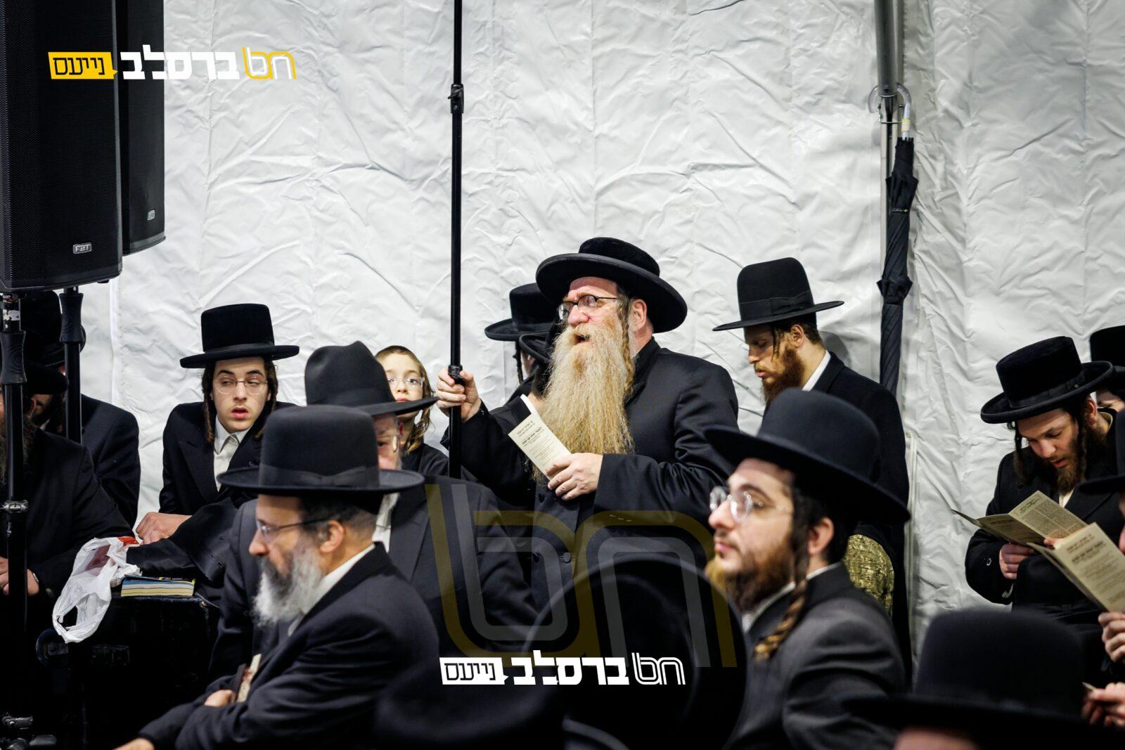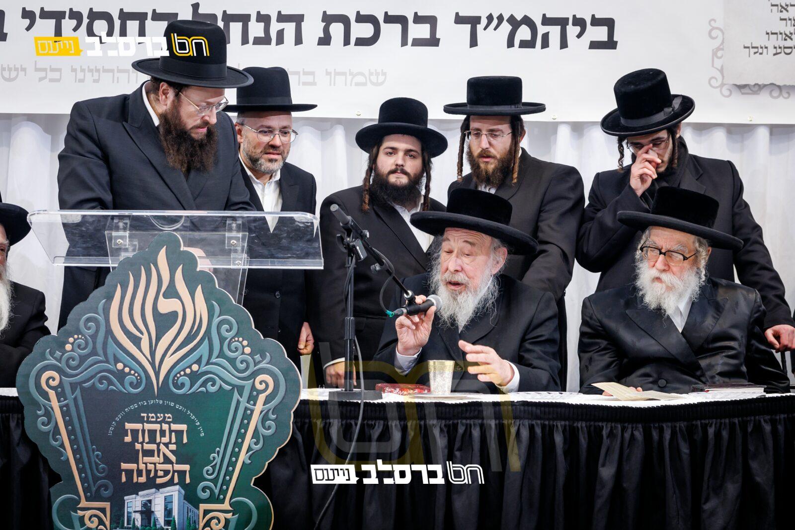 המעמד נערך באהל ענק שנבנה בסמוך למקום בניית הבניין והתקיים בהשתתפות מאות מיקירי אנשי שלומינו זקנים עם נערים בחורים לצד חסידים ואנשי מעשה עטורי זקנה ושיבה הע"י, כולם באו ונקבצו לך להשתתף במעמד ההיסטורי והנשגב. כאשר את המעמד ההיסטורי מנחה ברוב כשרון נופת צופים המגיד העולמי הרה"ח ר' מאיר מרדכי בערקאוויטש שליט"א מיקירי אנ"ש בארה"ב. ובין הייתר נשמעו דברים מפי הגה"צ רבי משה קרעמער שליט"א, כן נשמעו דברים מפי הגה"צ רבי יעקב מאיר שכטער שליט"א בלייב־הוקאפ (שידור חיי). ומעוד רבנים חשובים.