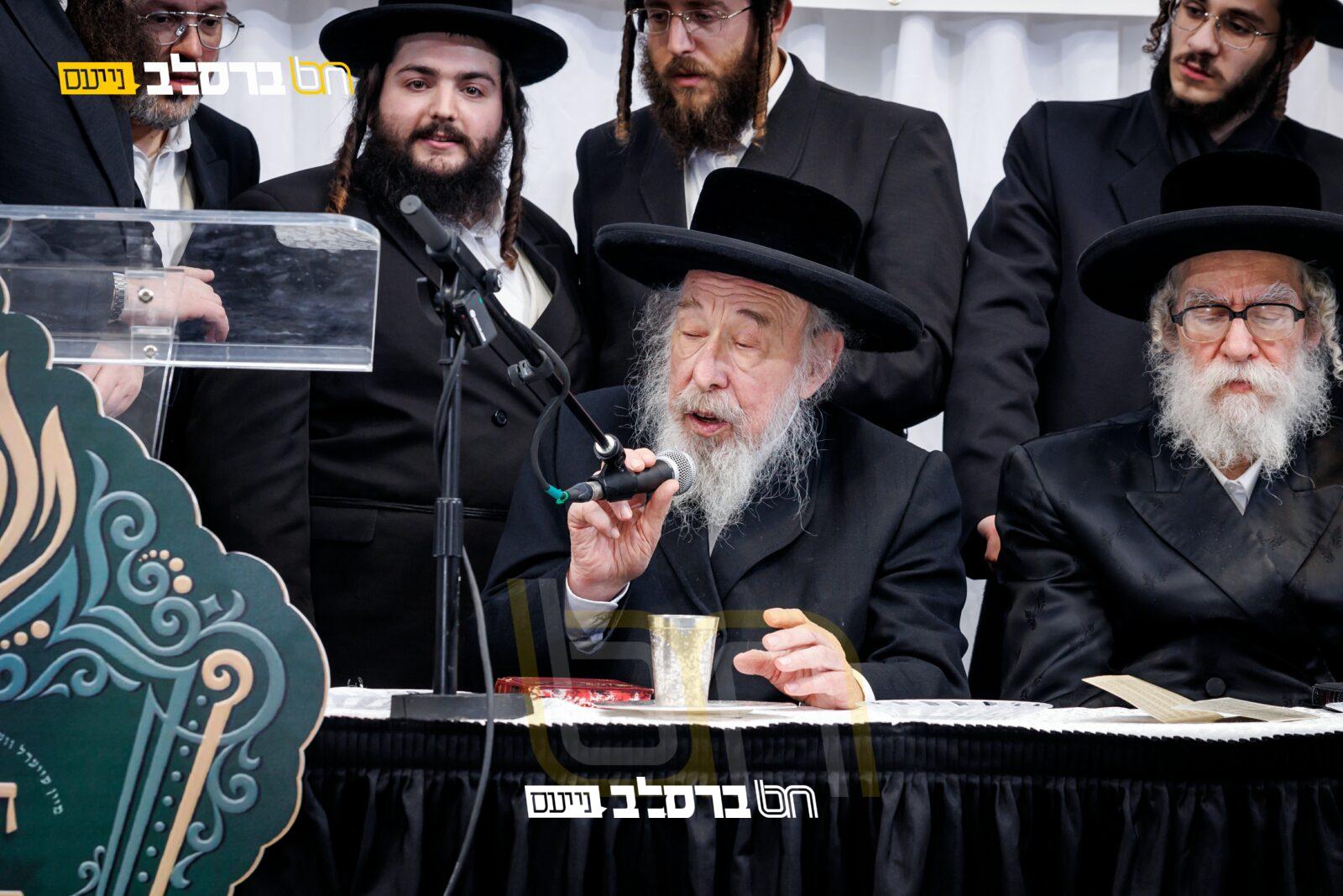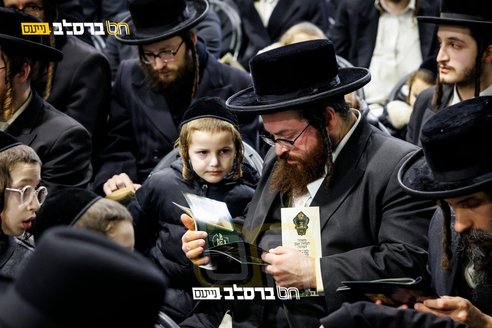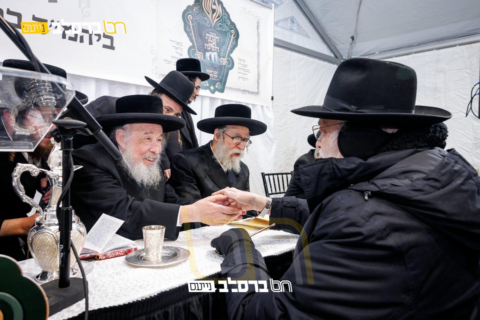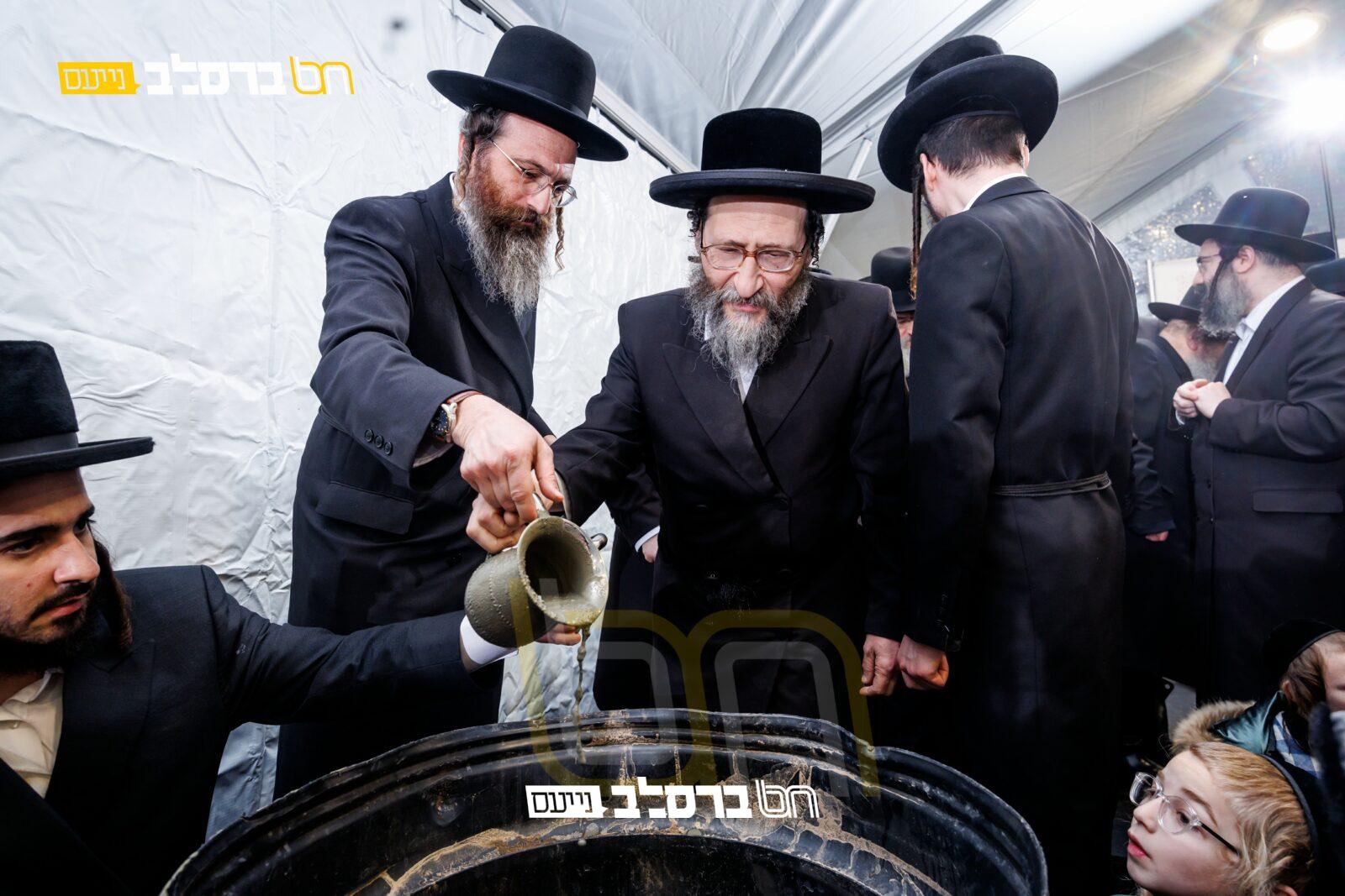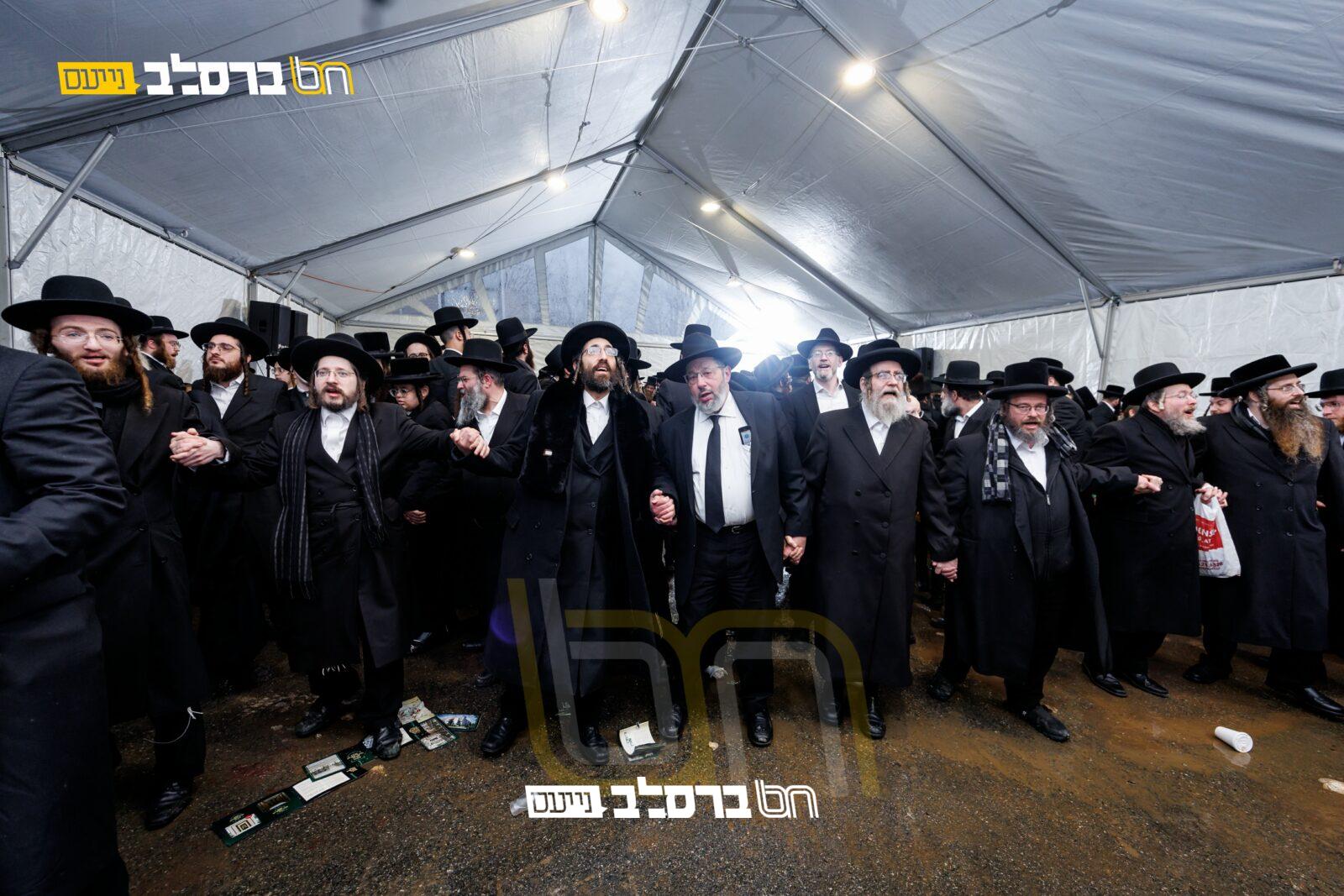 המעמד נערך באהל ענק שנבנה בסמוך למקום בניית הבניין והתקיים בהשתתפות מאות מיקירי אנשי שלומינו זקנים עם נערים בחורים לצד חסידים ואנשי מעשה עטורי זקנה ושיבה הע"י, כולם באו ונקבצו לך להשתתף במעמד ההיסטורי והנשגב. כאשר את המעמד ההיסטורי מנחה ברוב כשרון נופת צופים המגיד העולמי הרה"ח ר' מאיר מרדכי בערקאוויטש שליט"א מיקירי אנ"ש בארה"ב. ובין הייתר נשמעו דברים מפי הגה"צ רבי משה קרעמער שליט"א, כן נשמעו דברים מפי הגה"צ רבי יעקב מאיר שכטער שליט"א בלייב־הוקאפ (שידור חיי). ומעוד רבנים חשובים.