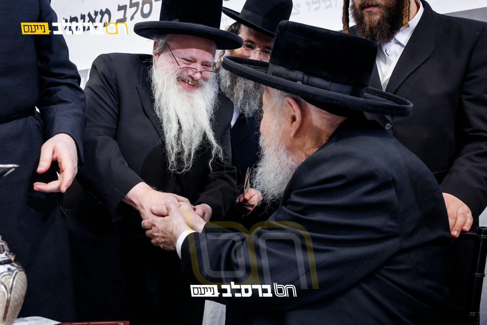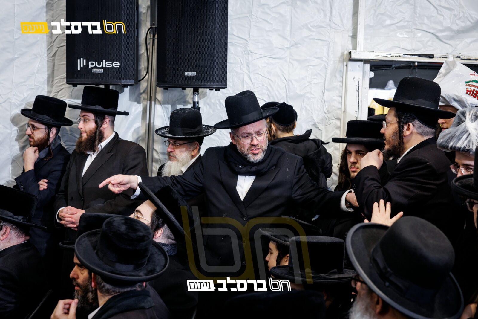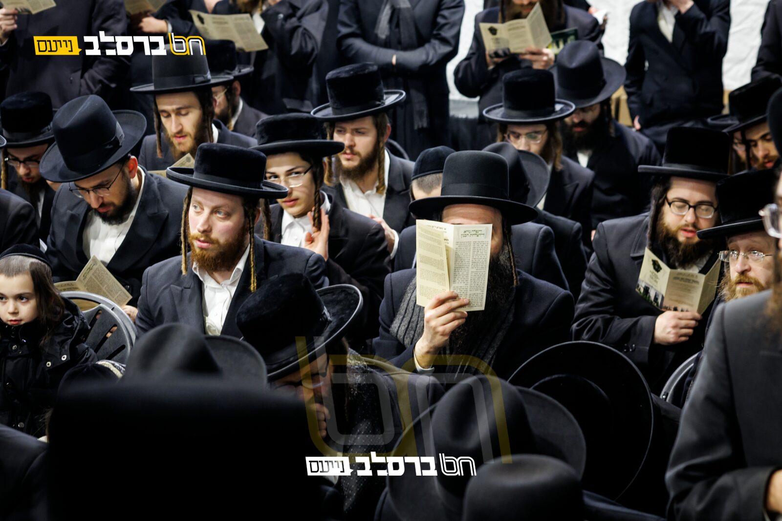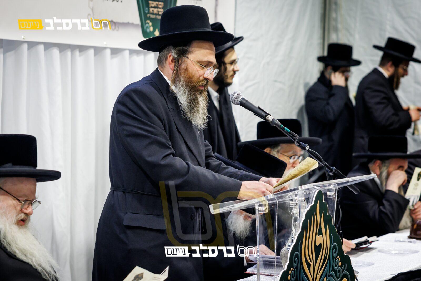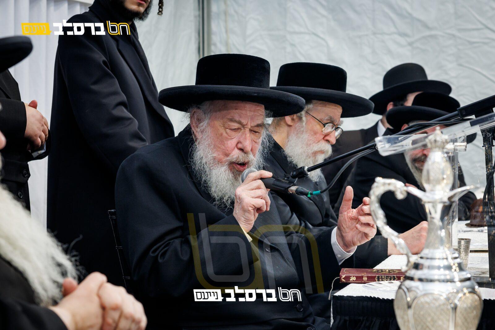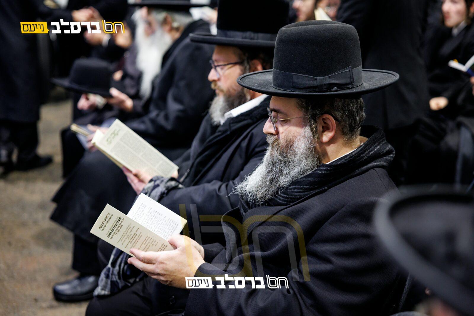 המעמד נערך באהל ענק שנבנה בסמוך למקום בניית הבניין והתקיים בהשתתפות מאות מיקירי אנשי שלומינו זקנים עם נערים בחורים לצד חסידים ואנשי מעשה עטורי זקנה ושיבה הע"י, כולם באו ונקבצו לך להשתתף במעמד ההיסטורי והנשגב. כאשר את המעמד ההיסטורי מנחה ברוב כשרון נופת צופים המגיד העולמי הרה"ח ר' מאיר מרדכי בערקאוויטש שליט"א מיקירי אנ"ש בארה"ב. ובין הייתר נשמעו דברים מפי הגה"צ רבי משה קרעמער שליט"א, כן נשמעו דברים מפי הגה"צ רבי יעקב מאיר שכטער שליט"א בלייב־הוקאפ (שידור חיי). ומעוד רבנים חשובים.