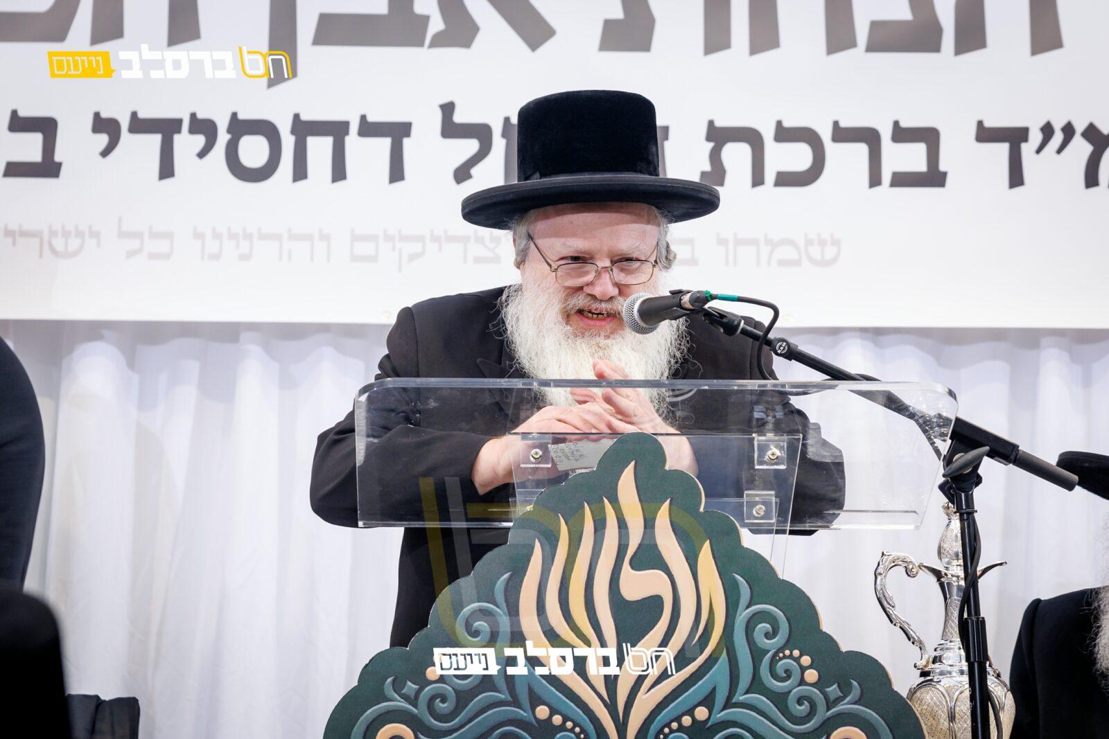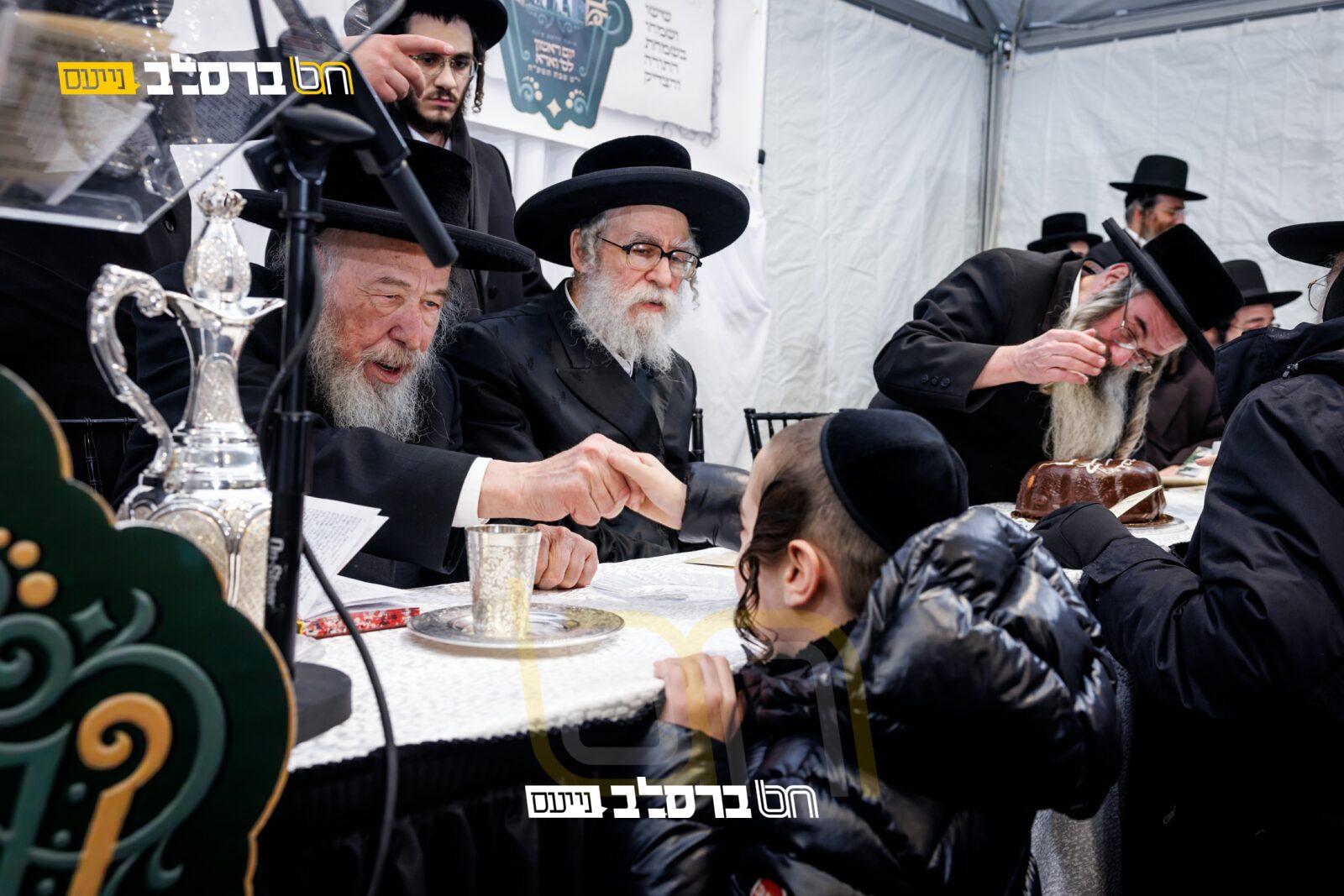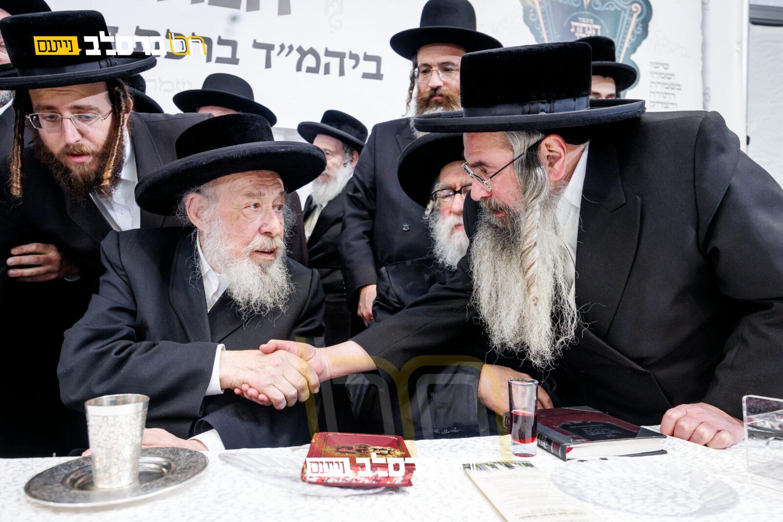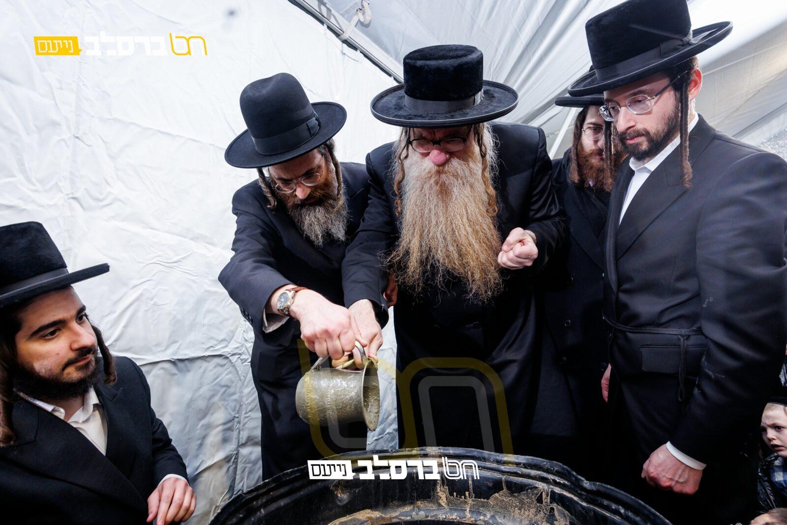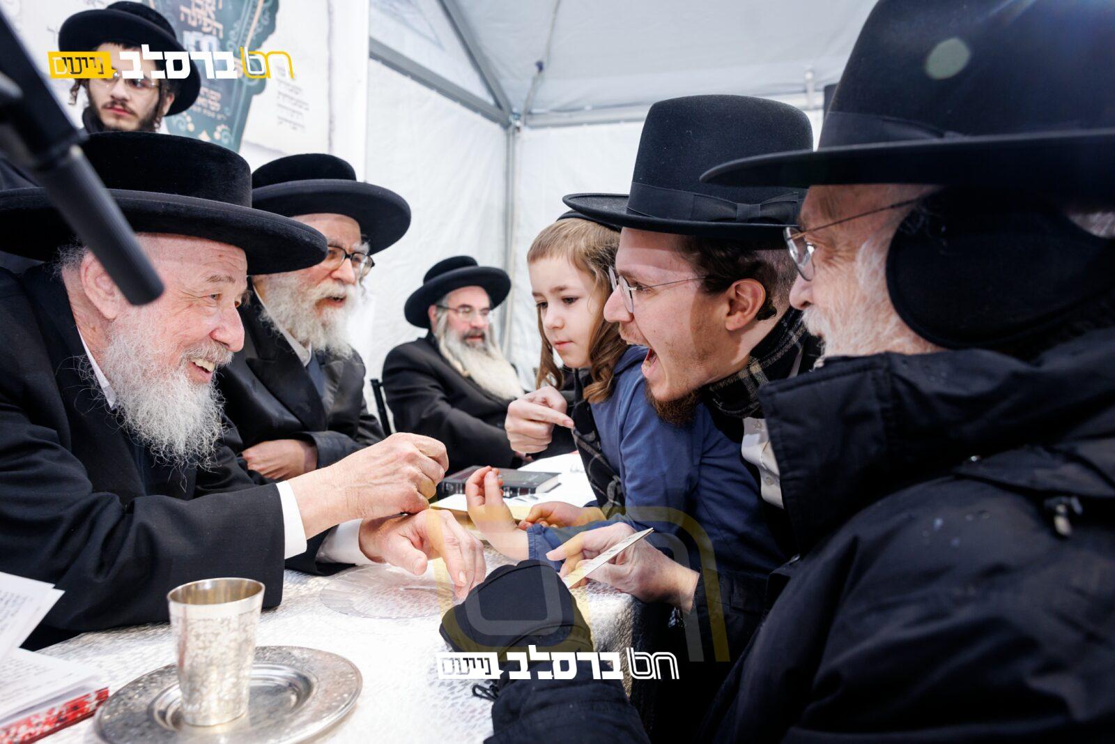 המעמד נערך באהל ענק שנבנה בסמוך למקום בניית הבניין והתקיים בהשתתפות מאות מיקירי אנשי שלומינו זקנים עם נערים בחורים לצד חסידים ואנשי מעשה עטורי זקנה ושיבה הע"י, כולם באו ונקבצו לך להשתתף במעמד ההיסטורי והנשגב. כאשר את המעמד ההיסטורי מנחה ברוב כשרון נופת צופים המגיד העולמי הרה"ח ר' מאיר מרדכי בערקאוויטש שליט"א מיקירי אנ"ש בארה"ב. ובין הייתר נשמעו דברים מפי הגה"צ רבי משה קרעמער שליט"א, כן נשמעו דברים מפי הגה"צ רבי יעקב מאיר שכטער שליט"א בלייב־הוקאפ (שידור חיי). ומעוד רבנים חשובים.