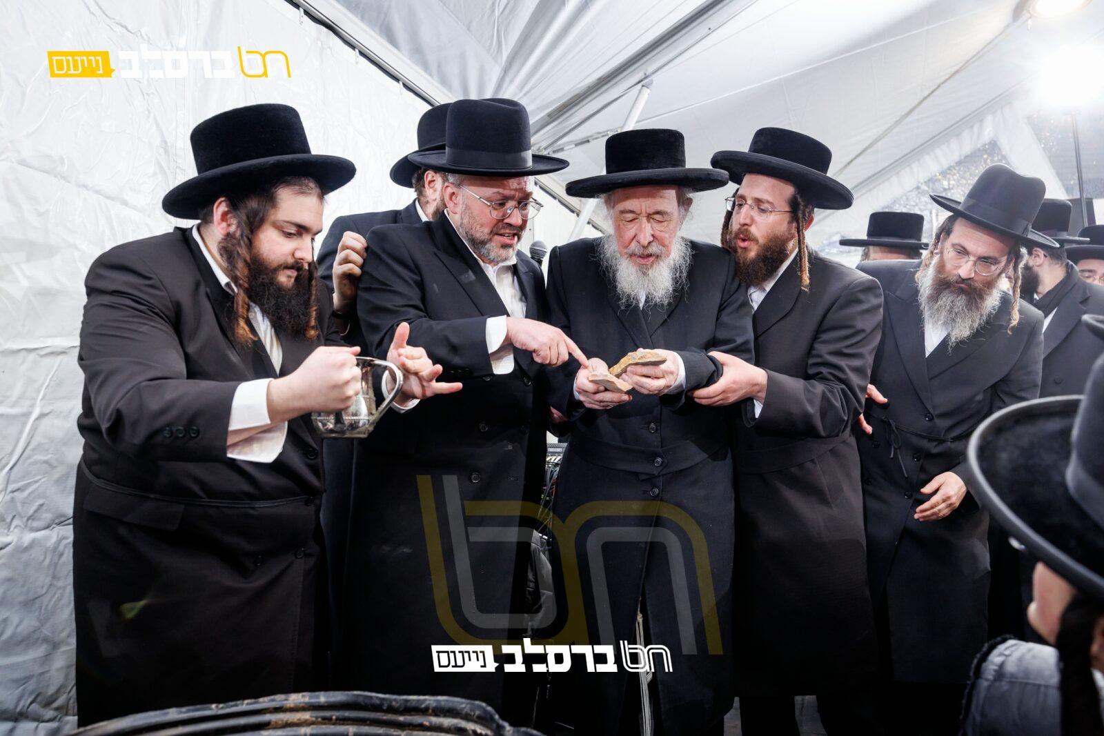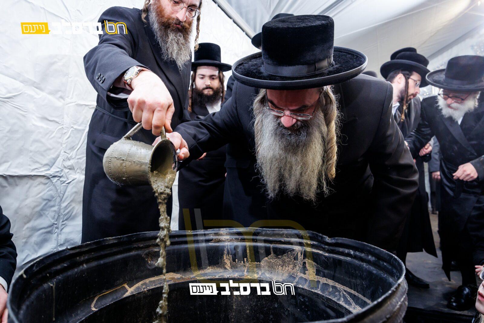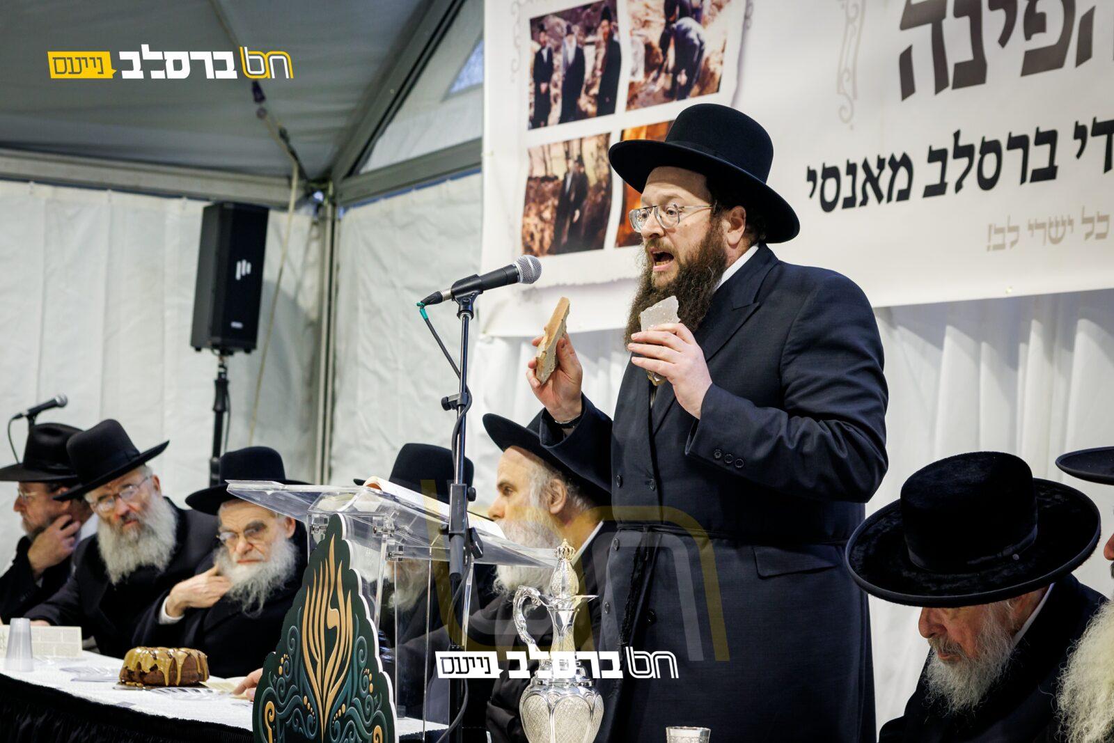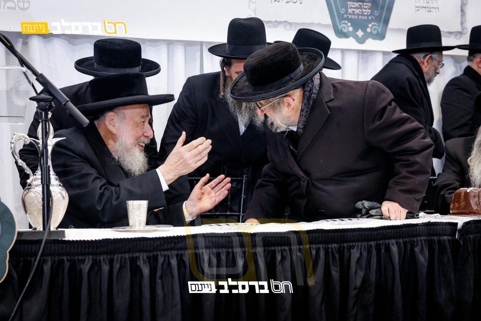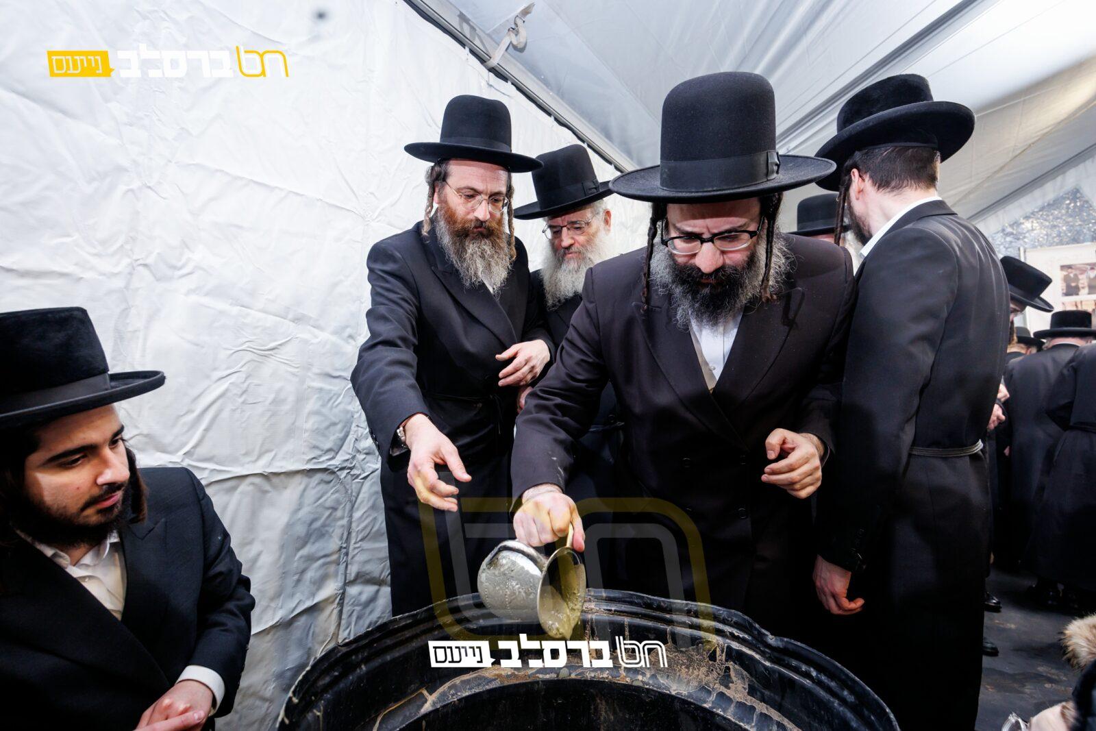 המעמד נערך באהל ענק שנבנה בסמוך למקום בניית הבניין והתקיים בהשתתפות מאות מיקירי אנשי שלומינו זקנים עם נערים בחורים לצד חסידים ואנשי מעשה עטורי זקנה ושיבה הע"י, כולם באו ונקבצו לך להשתתף במעמד ההיסטורי והנשגב. כאשר את המעמד ההיסטורי מנחה ברוב כשרון נופת צופים המגיד העולמי הרה"ח ר' מאיר מרדכי בערקאוויטש שליט"א מיקירי אנ"ש בארה"ב. ובין הייתר נשמעו דברים מפי הגה"צ רבי משה קרעמער שליט"א, כן נשמעו דברים מפי הגה"צ רבי יעקב מאיר שכטער שליט"א בלייב־הוקאפ (שידור חיי). ומעוד רבנים חשובים.