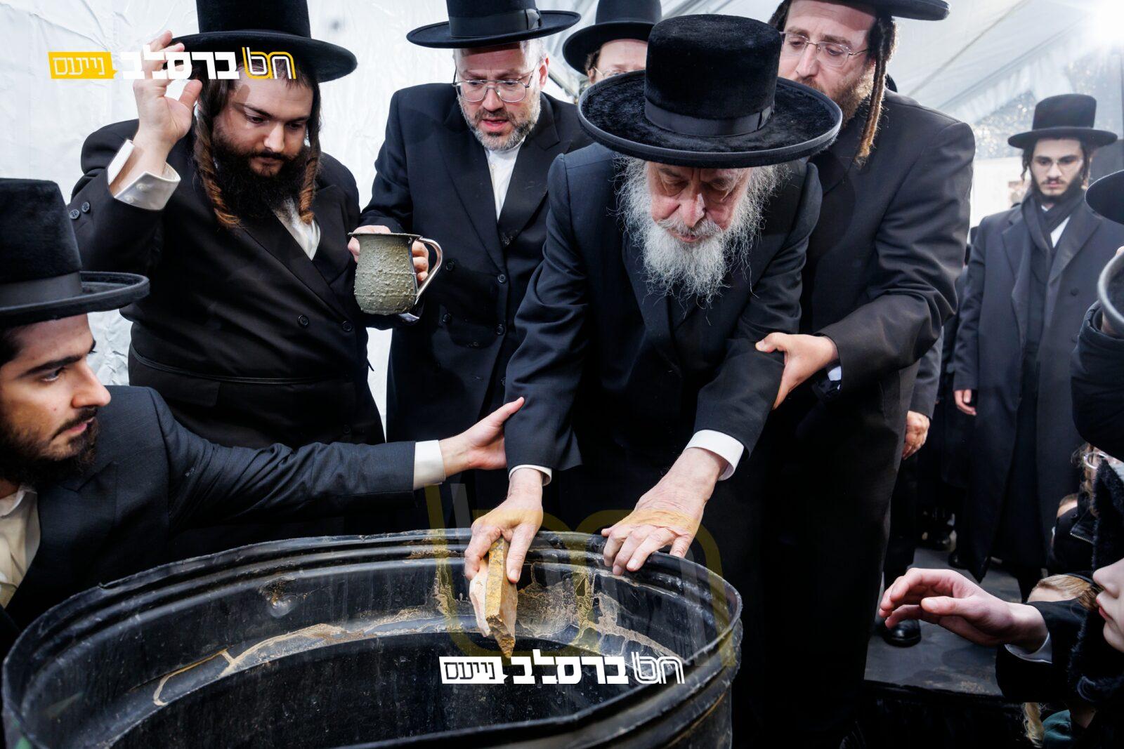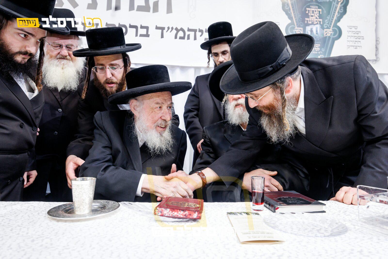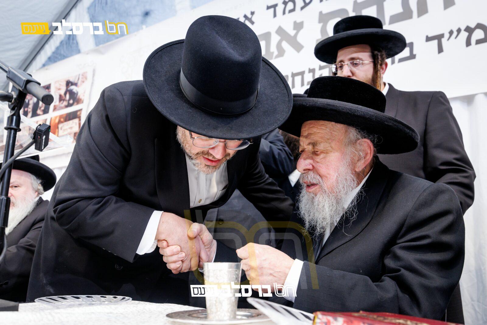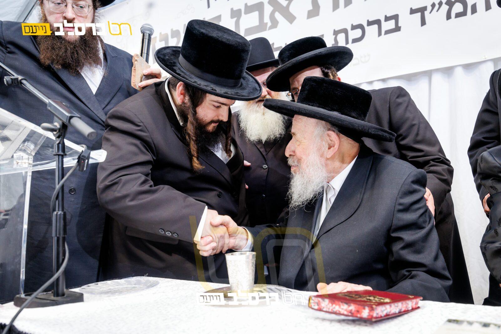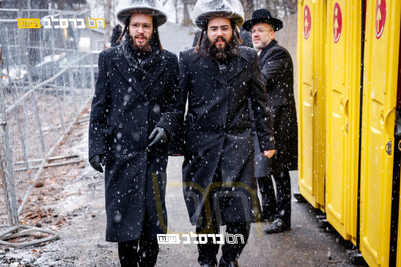 המעמד נערך באהל ענק שנבנה בסמוך למקום בניית הבניין והתקיים בהשתתפות מאות מיקירי אנשי שלומינו זקנים עם נערים בחורים לצד חסידים ואנשי מעשה עטורי זקנה ושיבה הע"י, כולם באו ונקבצו לך להשתתף במעמד ההיסטורי והנשגב. כאשר את המעמד ההיסטורי מנחה ברוב כשרון נופת צופים המגיד העולמי הרה"ח ר' מאיר מרדכי בערקאוויטש שליט"א מיקירי אנ"ש בארה"ב. ובין הייתר נשמעו דברים מפי הגה"צ רבי משה קרעמער שליט"א, כן נשמעו דברים מפי הגה"צ רבי יעקב מאיר שכטער שליט"א בלייב־הוקאפ (שידור חיי). ומעוד רבנים חשובים.
