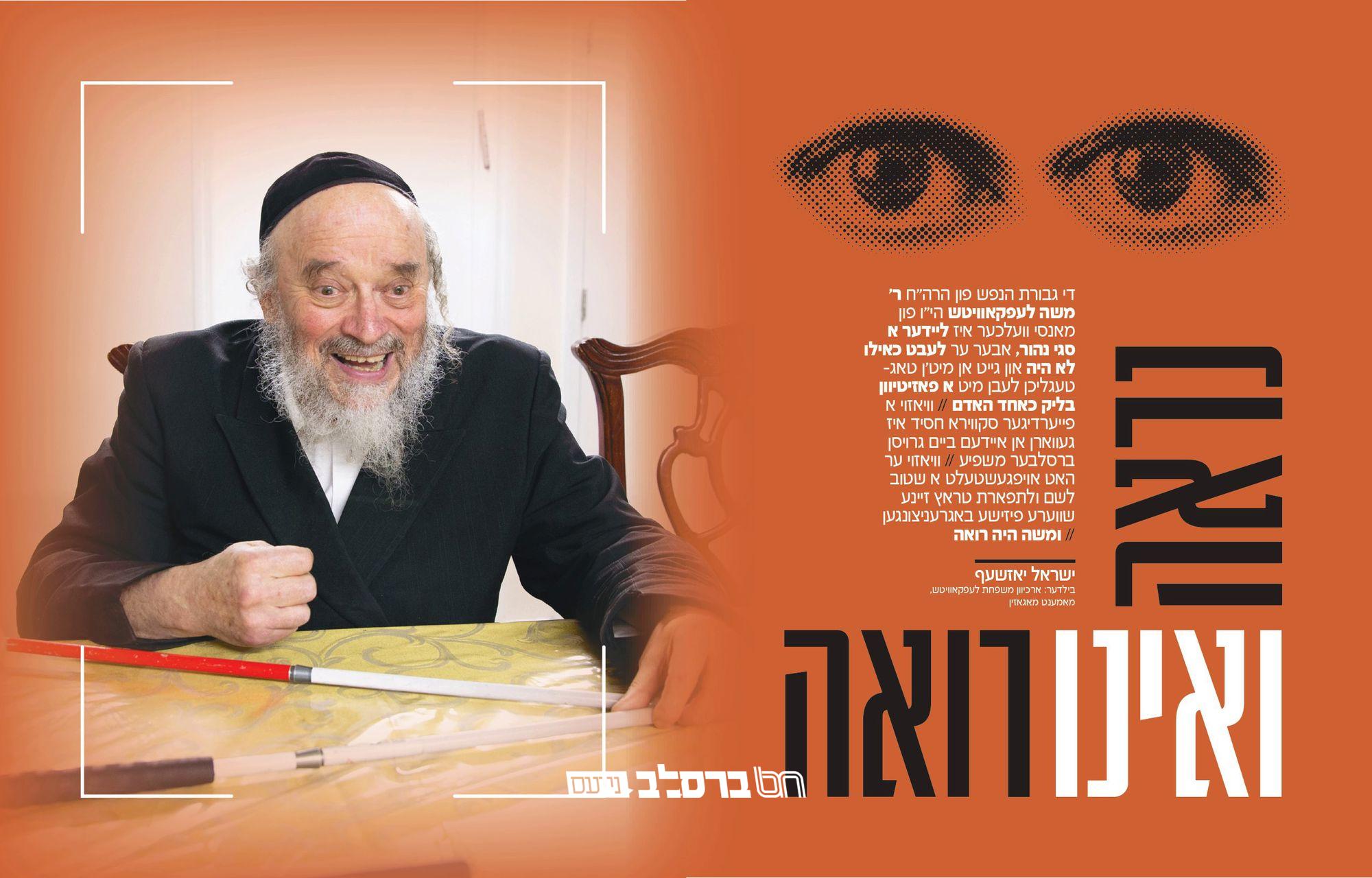כתבות וראיונות » ראיונות מהעיתונות » מדור מיוחד לבין הזמנים • "ומשה היה רואה" חתנו של חסיד המופלא רבי שמואל שפירא זצוק"ל חושף הכל בריאיון מטלטל: די גבורת הנפש פון הרה"ח ר' משה לעפקאוויטש הי"ו פון מאנסי וועלכער איז ליידער א סגי נהור, אבער ער לעבט כאילו לא היה און גייט אן מיט'ן טאג- טעגליכן לעבן מיט א פאזיטיוון בליק כאחד האדם | וויאזוי א פייערדיגער סקווירא חסיד איז געווארן אן איידעם ביים גרויסן ברסלבער משפיע | וויאזוי ער האט אויפגעשטעלט א שטוב לשם ולתפארת טראץ זיינע שווערע פיזישע באגרעניצונגען | מצורף להורדה: